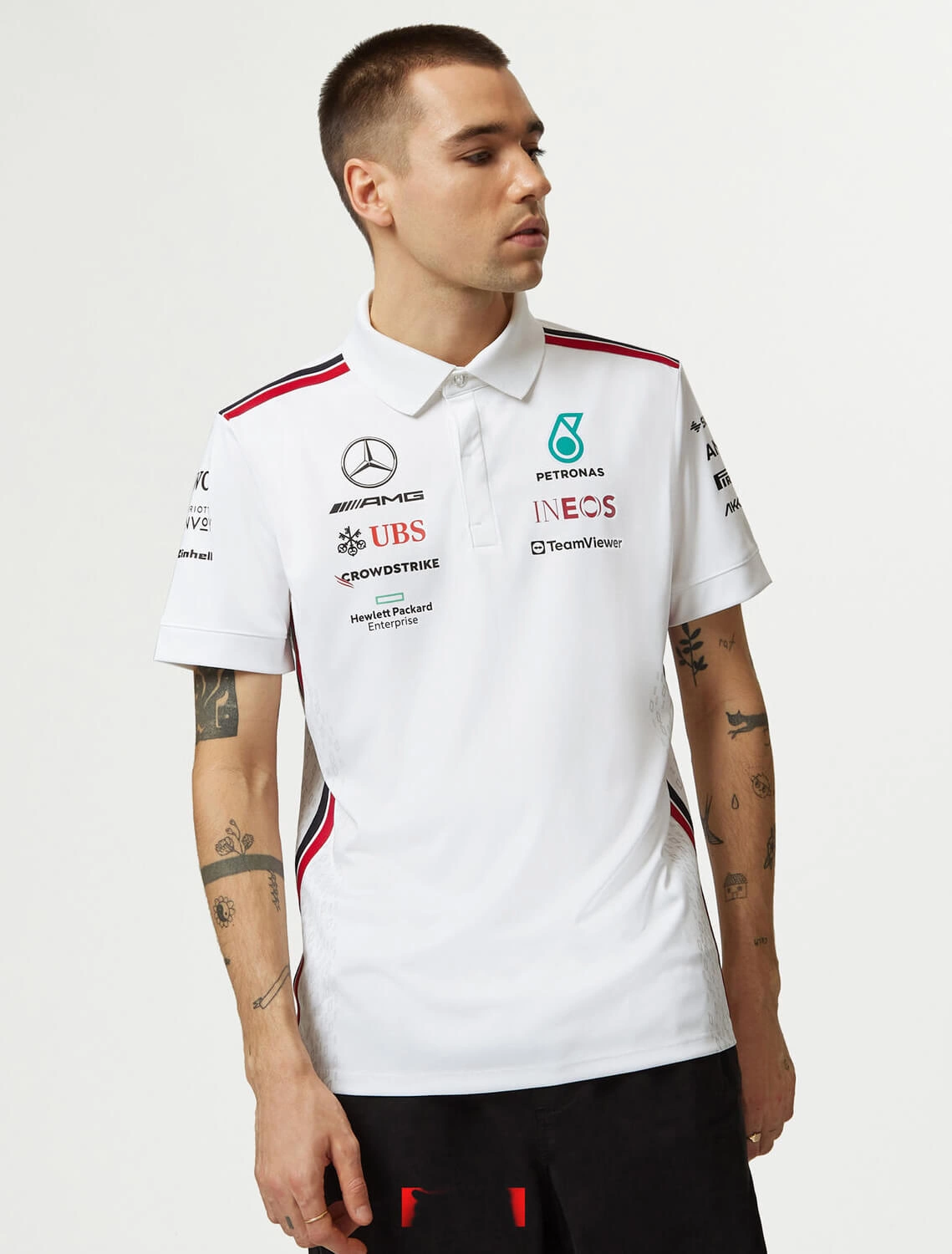 Polo shirt from the official Mercedes AMG Petronas F1 collection. Made of high quality material, it is a great choice for fans of the Mercedes AMG Petronas F1 team.
