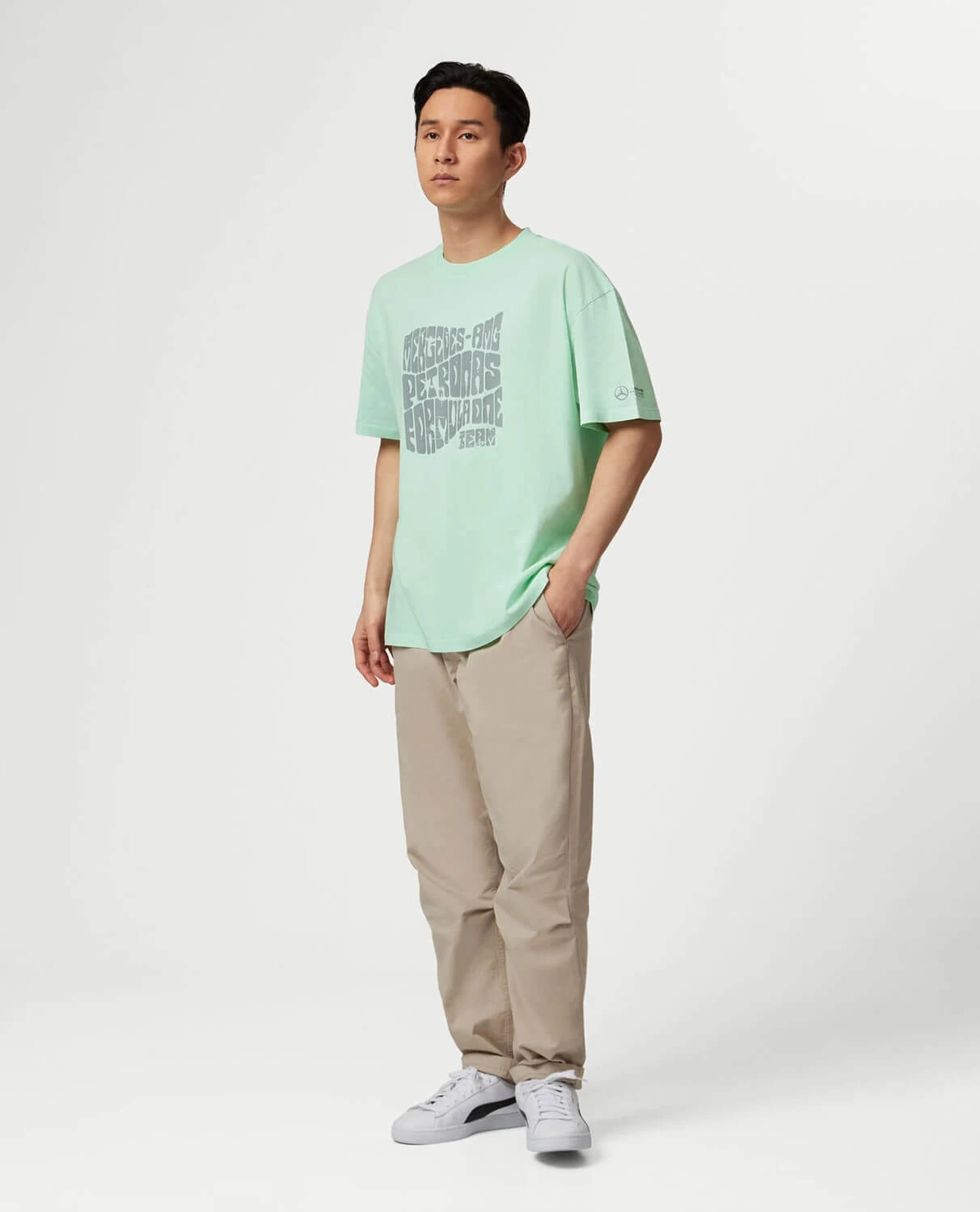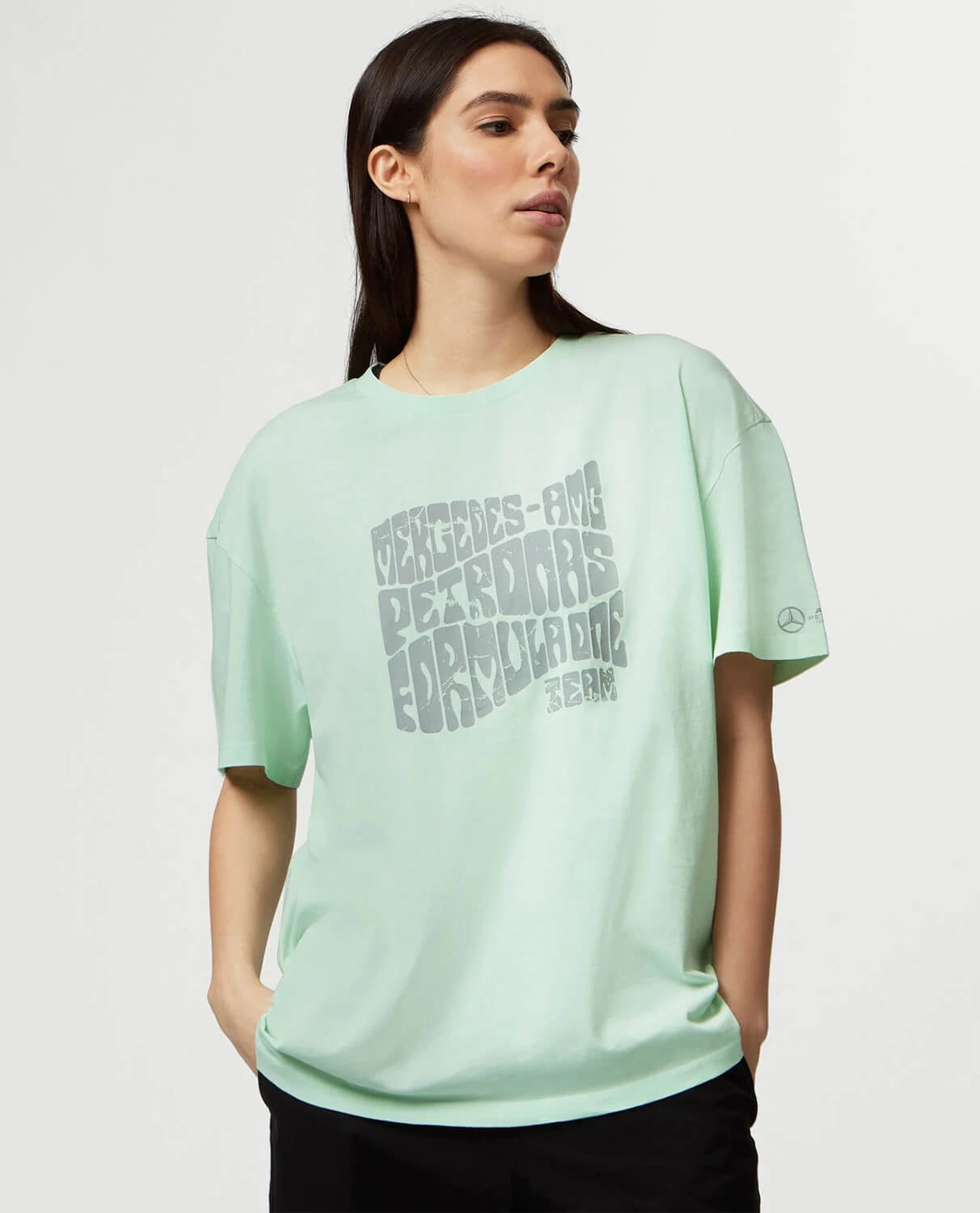 Available in a selection of seasonal pastel colourways and featuring a large Mercedes-AMG Petronas Formula One Team wave graphic print across the chest. Part of the 'Retro' pastel apparel and accessory collection, including T-shirts, Hoodie and accessories.