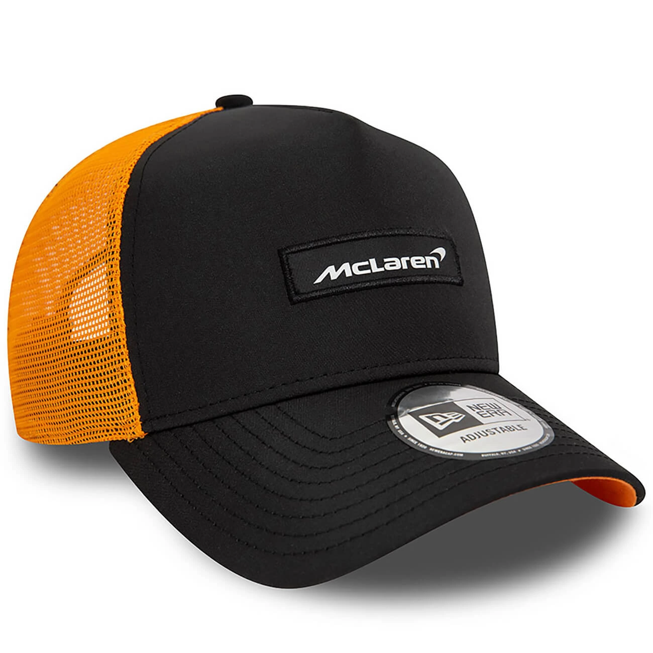 Official New Era McLaren Automotive A-Frame Trucker Cap.