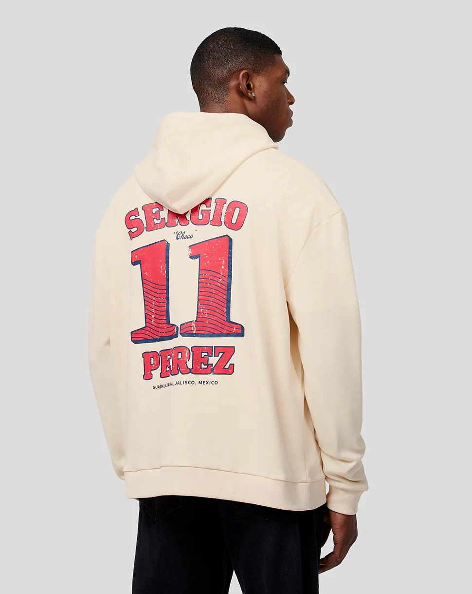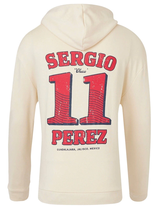 The unique 'Sergio Perez' graphic and driver number #11 on the back, inspired by vintage aesthetics, add an artistic expression to the hoodie.