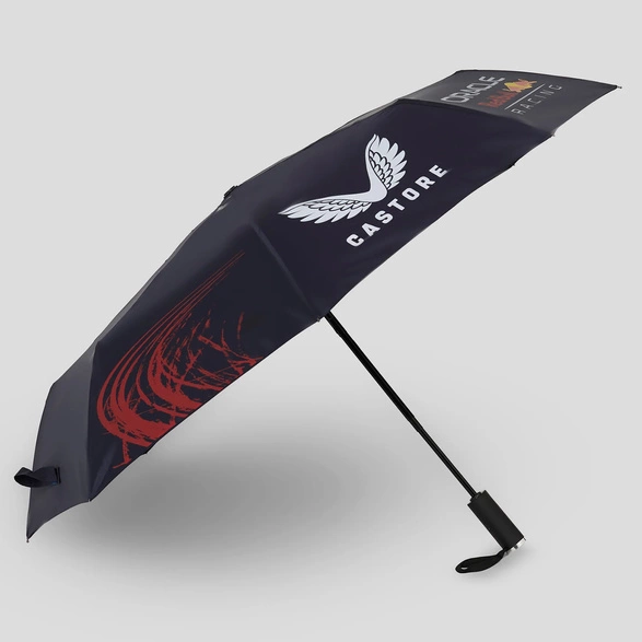 Red Bull Racing F1 Compact Umbrella stands out with its dynamic design, perfectly capturing the intensity and passion associated with Formula 1 racing. With a telescopic construction and a convenient button for opening and closing, the umbrella is not only functional but also easy to use. Ideal for storing in a bag or car.