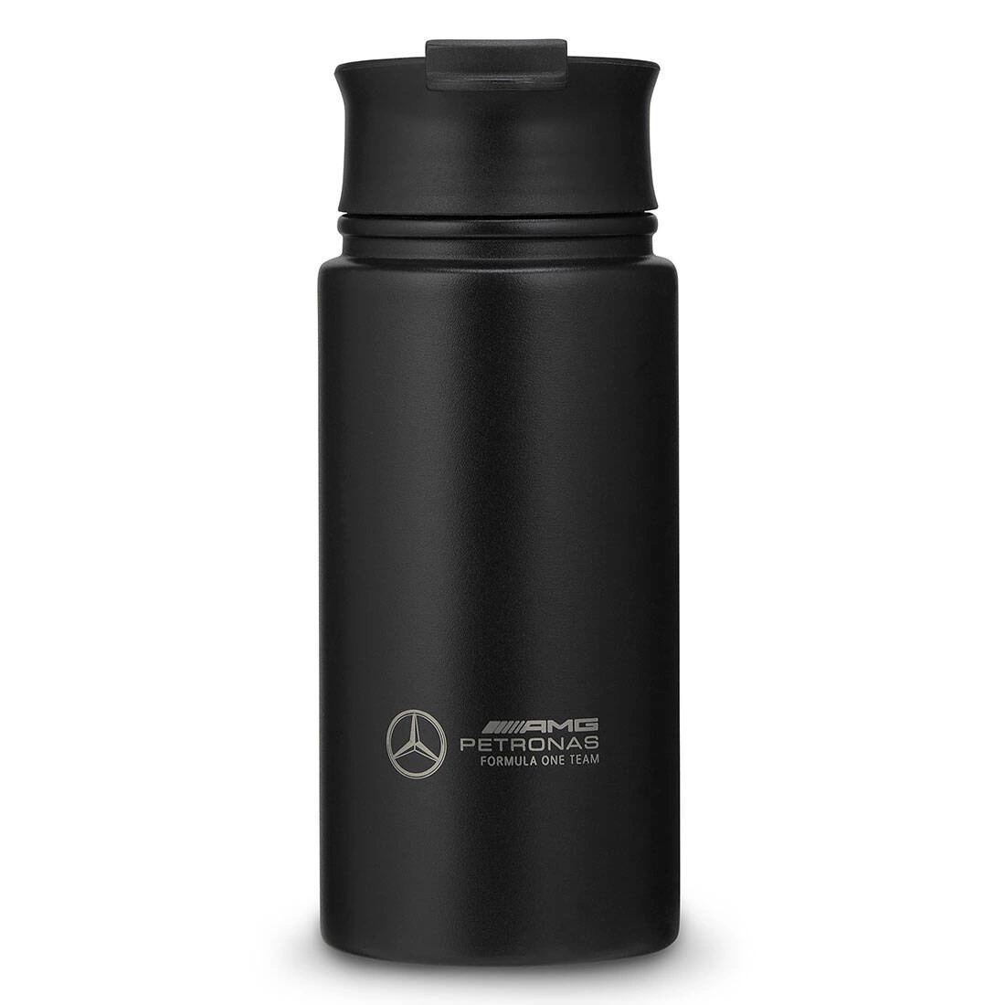 The thermal mug is part of the official Mercedes-AMG Petronas F1 Team collection, emphasizing its unique character and excellent craftsmanship.