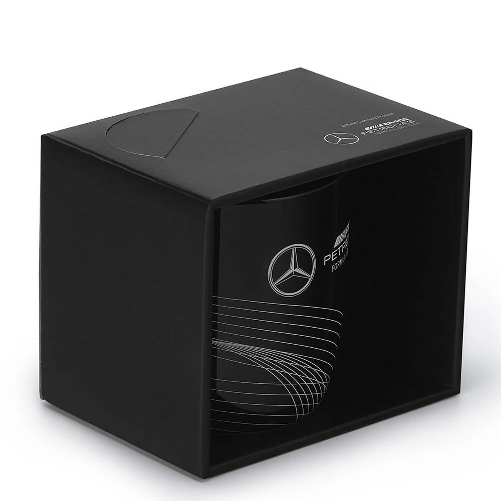The mug is part of the official Mercedes-AMG Petronas F1 Team collection, highlighting its unique character and excellent craftsmanship.