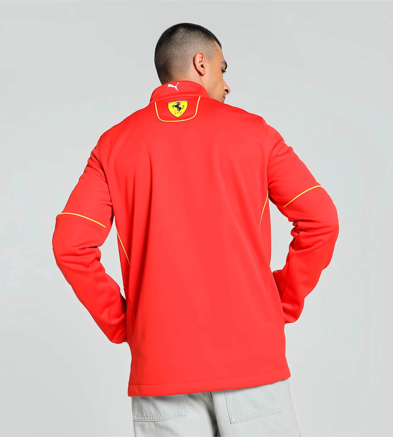 The Scuderia Ferrari Softshell Jacket for the 2024 Formula 1 season not only provides reliable protection against wind and light rain but also ensures comfort and freedom of movement. This unique jacket not only reflects the racing spirit but also offers an excellent combination of functionality and style, perfect for true tifosi - devoted and passionate fans of Scuderia Ferrari. The intense red color of the jacket perfectly matches the colors of the Ferrari 2024 season car, creating a harmonious and striking stylistic whole.