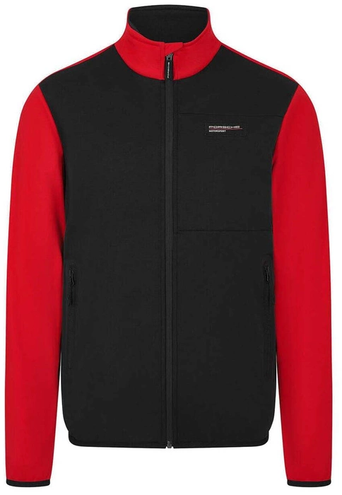 The Porsche Motorsport softshell jacket features a classic fit and performance-oriented design, distinguished by bold, racing-inspired patterns and the iconic "PORSCHE" print. This exceptional jacket combines a durable, windproof outer layer with advanced thermal insulation for cold weather protection. The flexible material ensures freedom of movement, while breathability provides comfort in various conditions. The interior, lined with soft, warm fabric, enhances comfort, making this jacket an ideal choice for any weather.