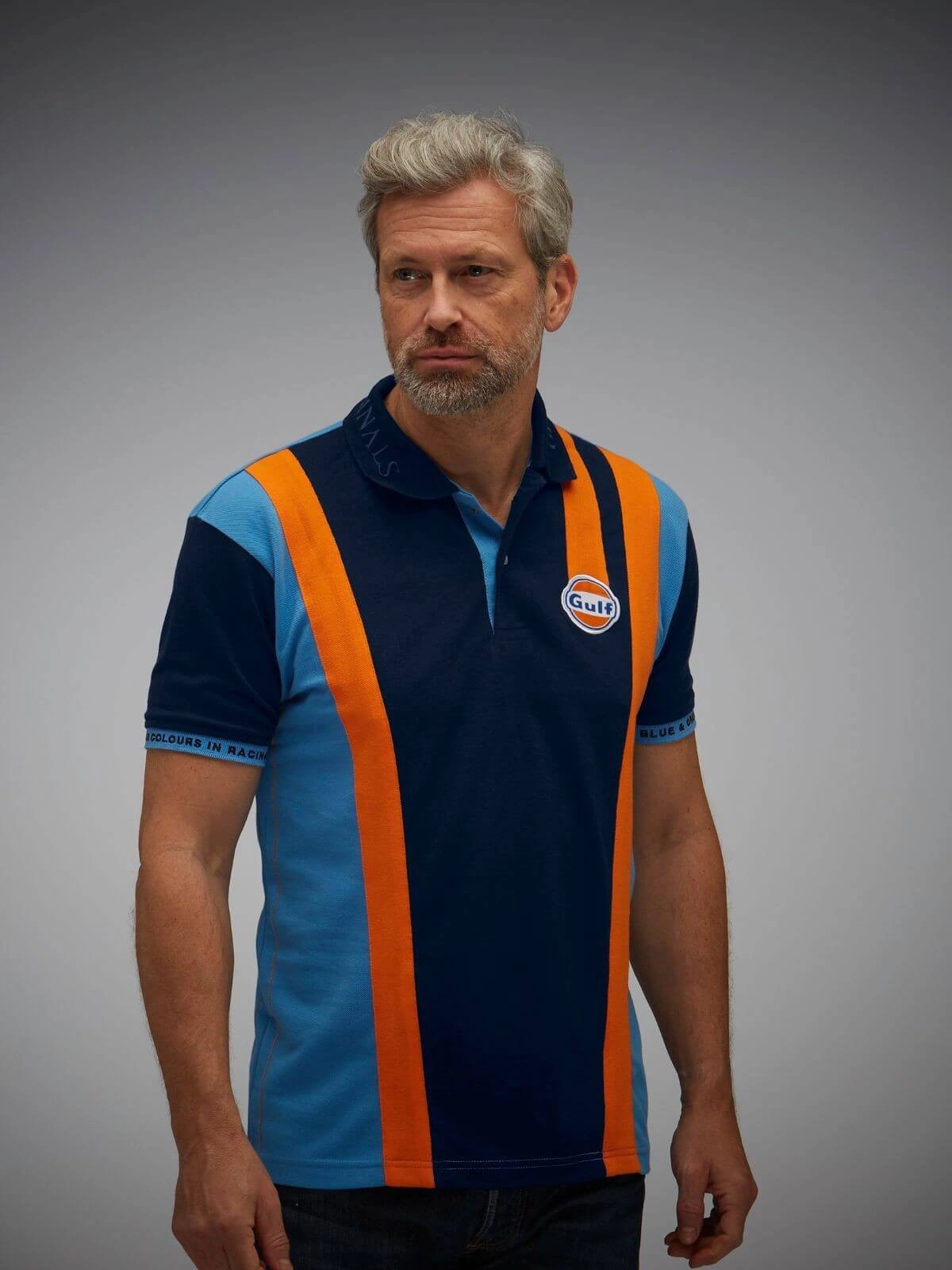 The Gulf Racing Team polo shirt is made of medium-weight, pre-washed, high-quality pique cotton that retains its shape and doesn't wrinkle. You'll be wearing it for a long time!