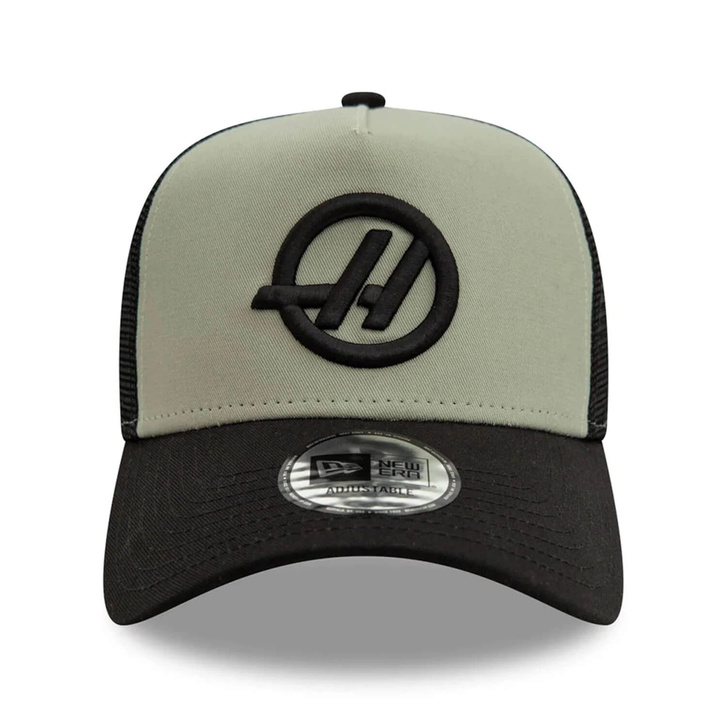 The New Era Haas F1 Team Seasonal Trucker cap is made from durable materials, ensuring comfort throughout the day. The mesh back provides ventilation, and the Haas F1 Team logo makes it stand out from other caps. Perfect for everyday wear.