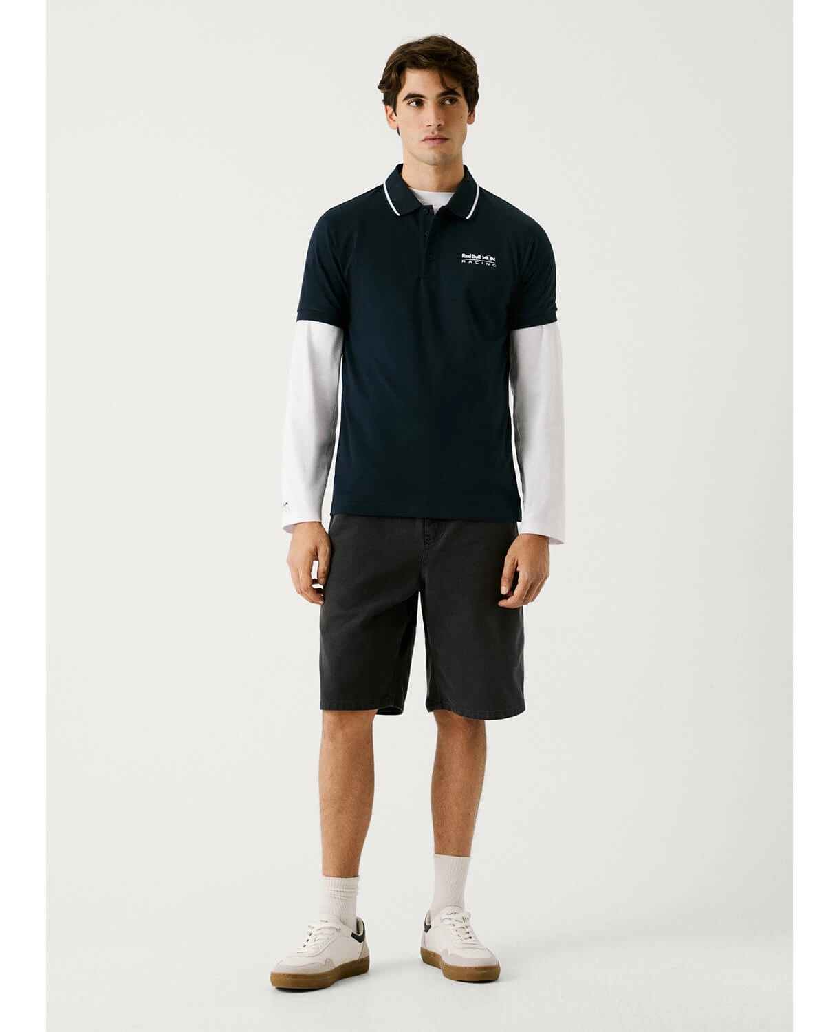 The Red Bull Racing Printed Logo Pique men's polo shirt with short sleeves is made from stretch piqué cotton, ensuring comfort and full freedom of movement. The printed Red Bull Racing logo adds a sporty touch. A perfect choice for everyday wear as well as more formal occasions.