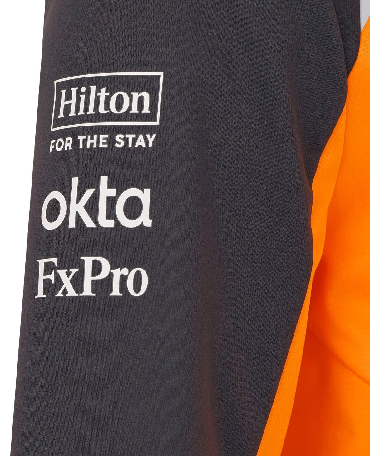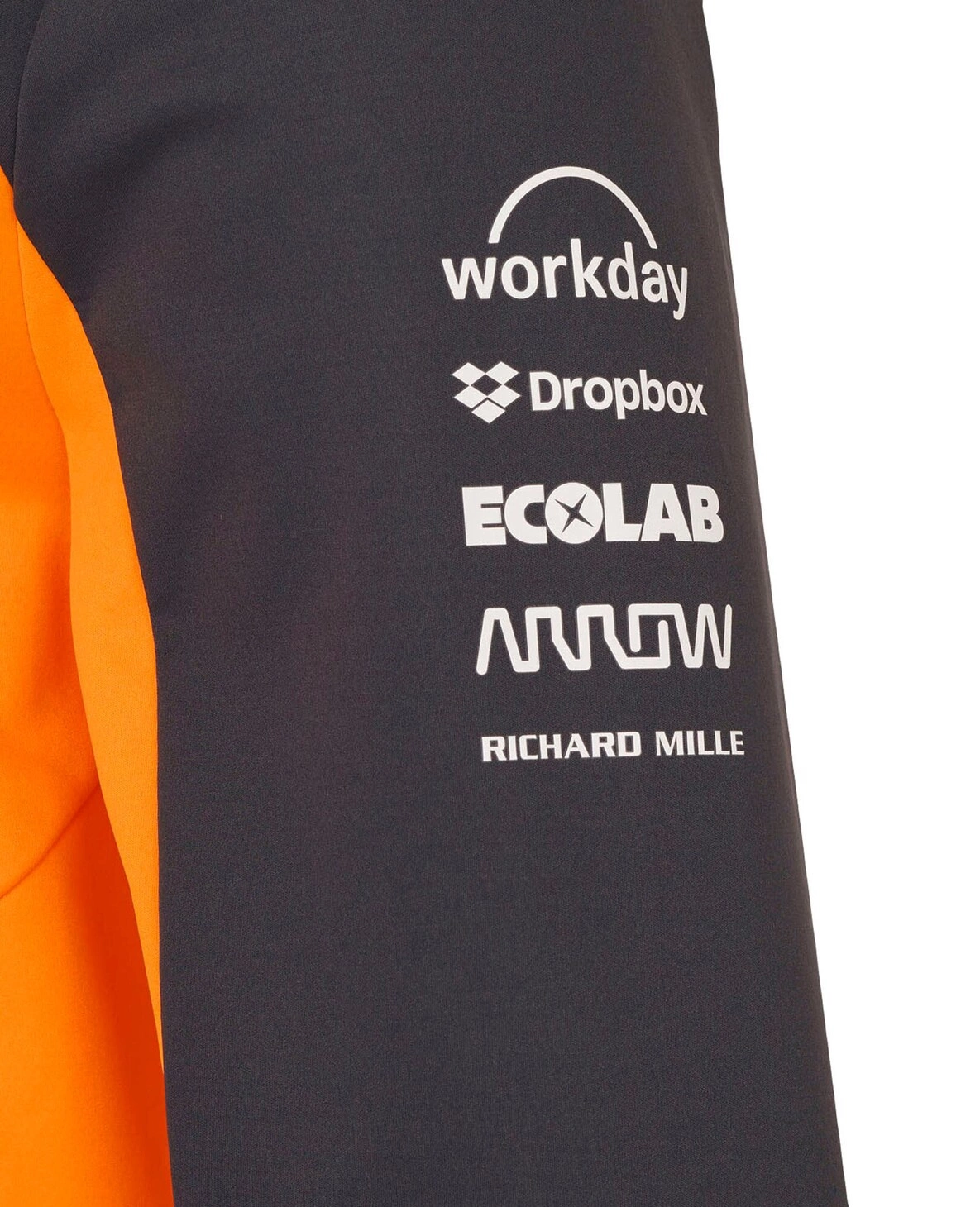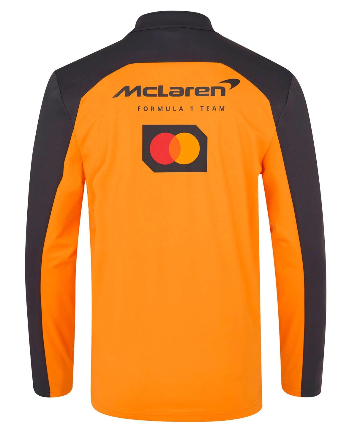 The official McLaren Formula 1 Team Softshell Jacket for the 2025 Formula 1 season combines functionality and style, making it perfect both on and off the track. Crafted from premium-quality materials, it provides effective protection against wind and light rain while ensuring full freedom of movement.