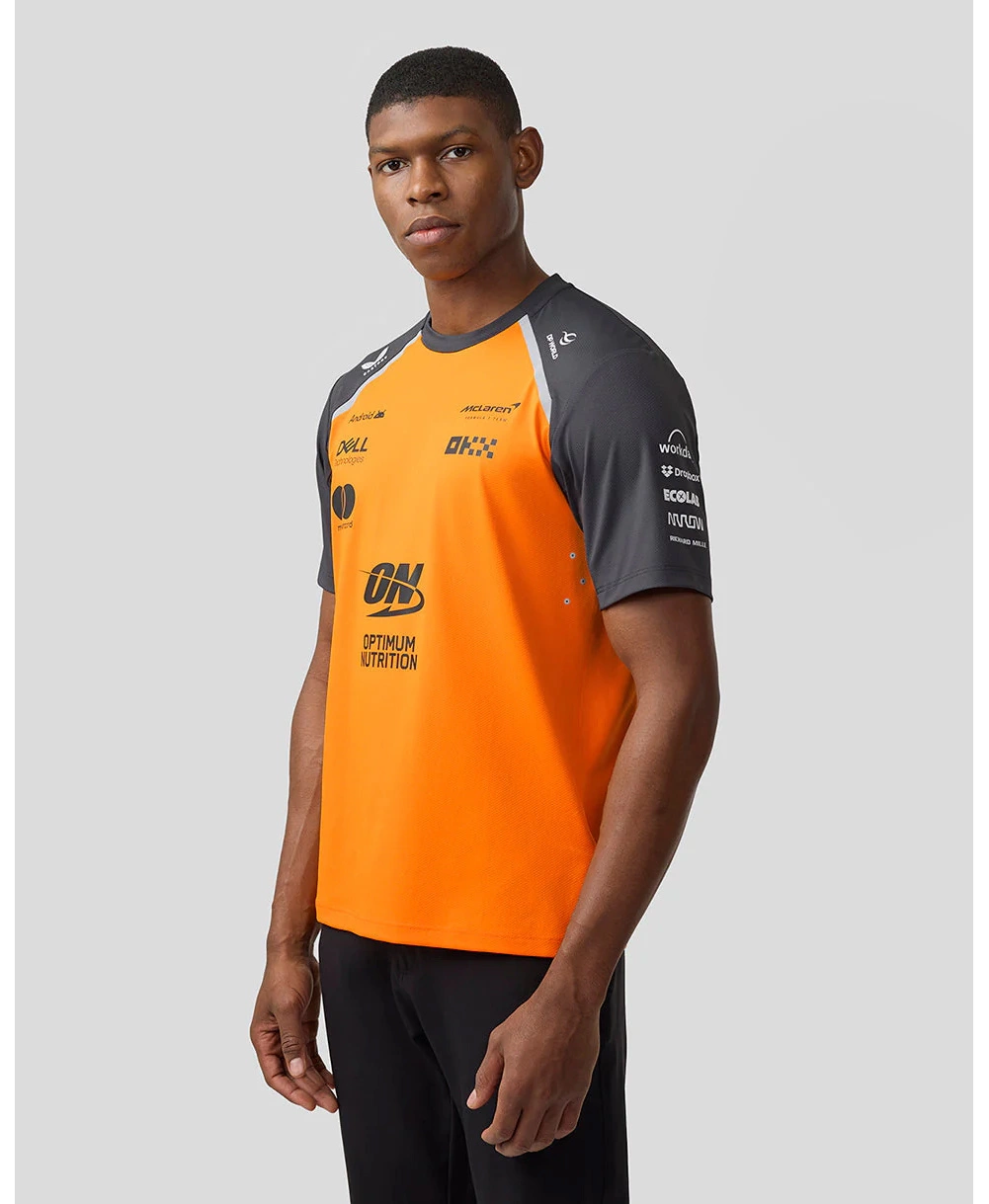 The official men's McLaren Formula 1 Team t-shirt for the 2025 season combines modern design with comfort. Made from high-quality materials, it ensures breathability and comfort throughout the day. Its careful craftsmanship and attention to detail highlight its excellent quality.