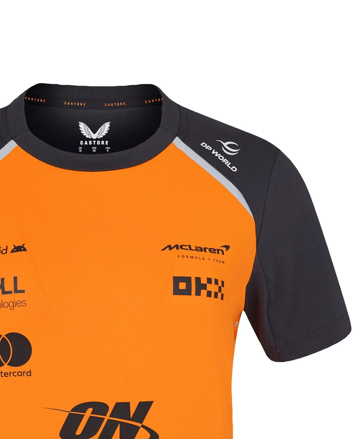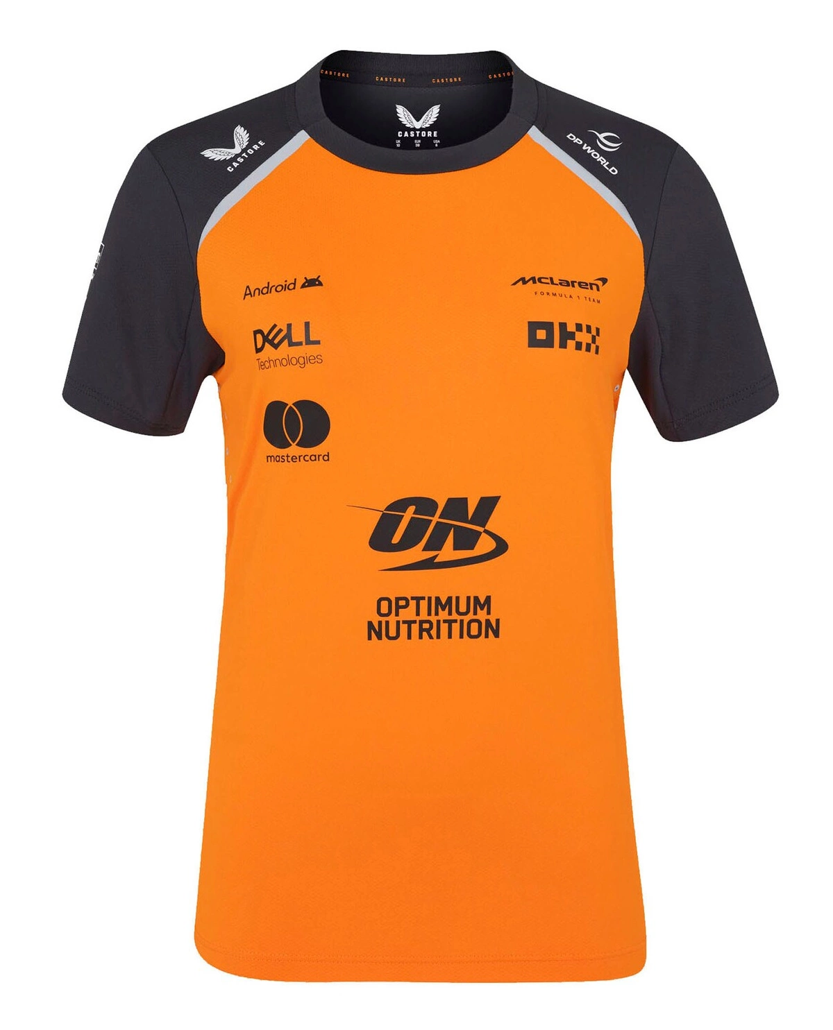 The official women's McLaren Formula 1 Team t-shirt for the 2025 season combines modern design with comfort. Made from high-quality materials, it ensures breathability and comfort throughout the day. Its careful craftsmanship and attention to detail highlight its excellent quality.