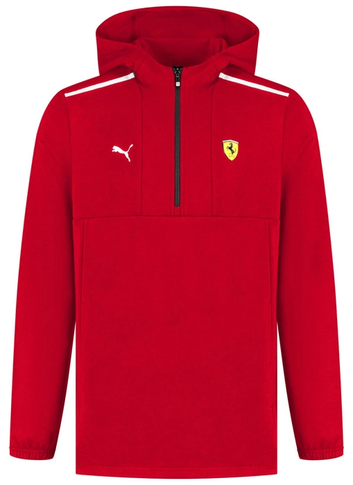The Scuderia Ferrari Quarter Zip Midlayer hoodie is the perfect combination of comfort and functionality, ideal for variable weather. Made from high-quality materials, it provides optimal thermal insulation while remaining light and breathable. The 1/4 length zipper allows for ventilation adjustment, ensuring comfort during intense activities.