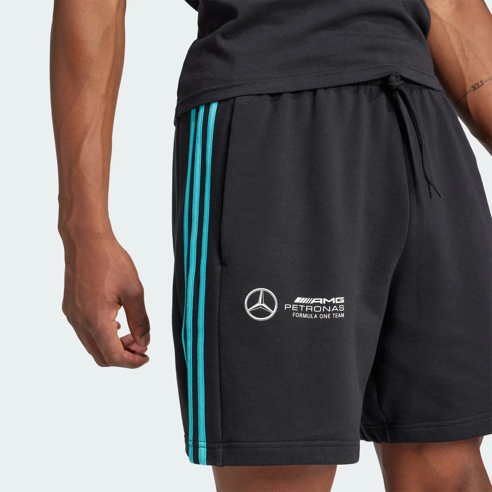 Represent the Mercedes-AMG Petronas Formula One Team with these adidas Motorsports shorts, designed to provide comfort and freedom of movement. Made from soft terry fabric, they ensure all-day comfort, while the adjustable waistband with an elastic drawstring allows for a perfect fit. The team logo on the leg adds a racing-inspired touch.