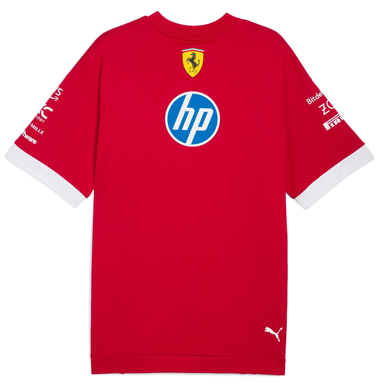 The official Scuderia Ferrari drivers' t-shirt for the 2025 season by PUMA is designed for true F1 fans. Worn by Charles Leclerc and Lewis Hamilton, it stands out with its signature Dark Cherry color and relaxed, oversized fit, ensuring maximum comfort and freedom of movement. A perfect choice for every Ferrari supporter!