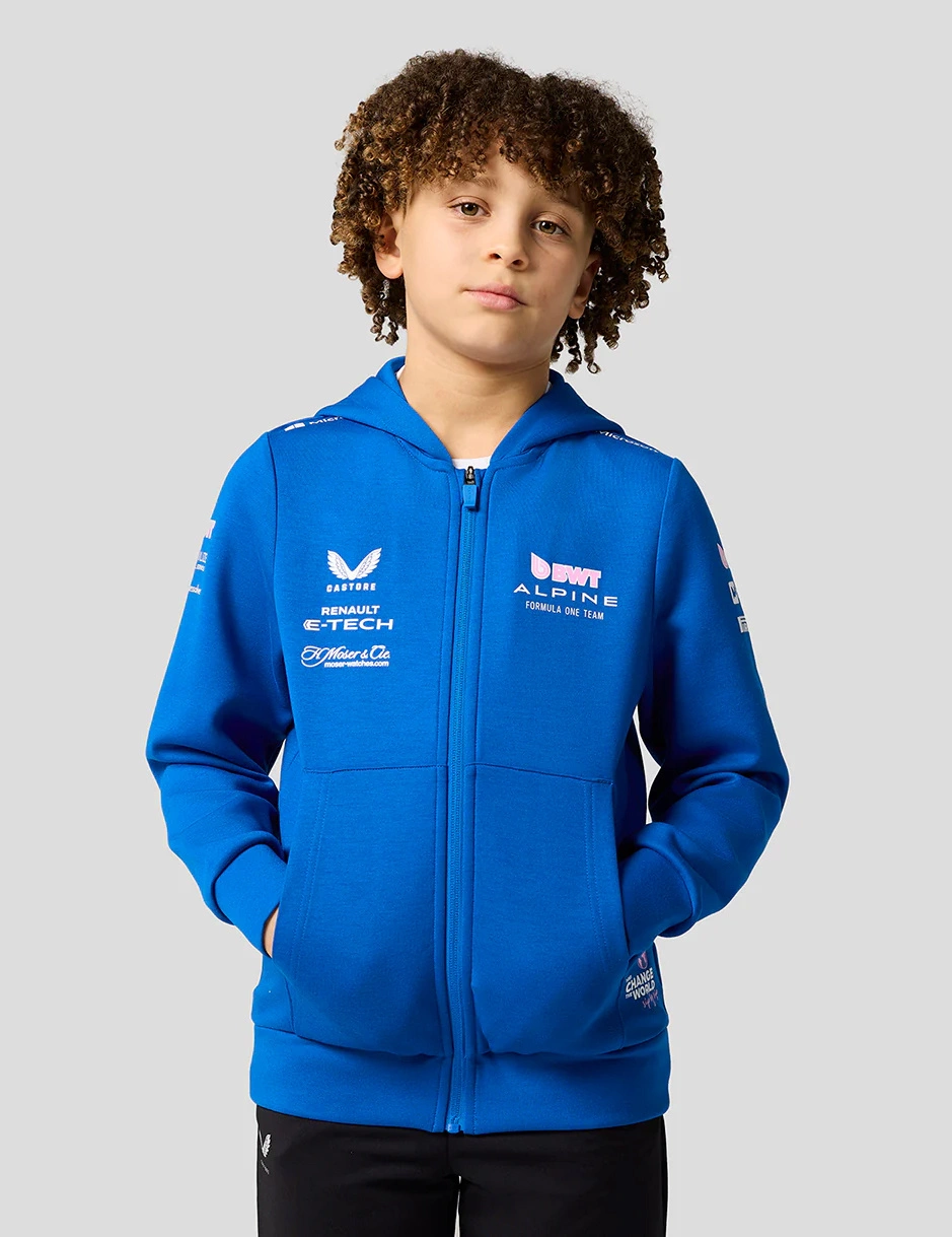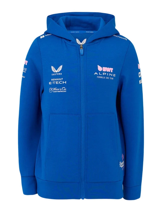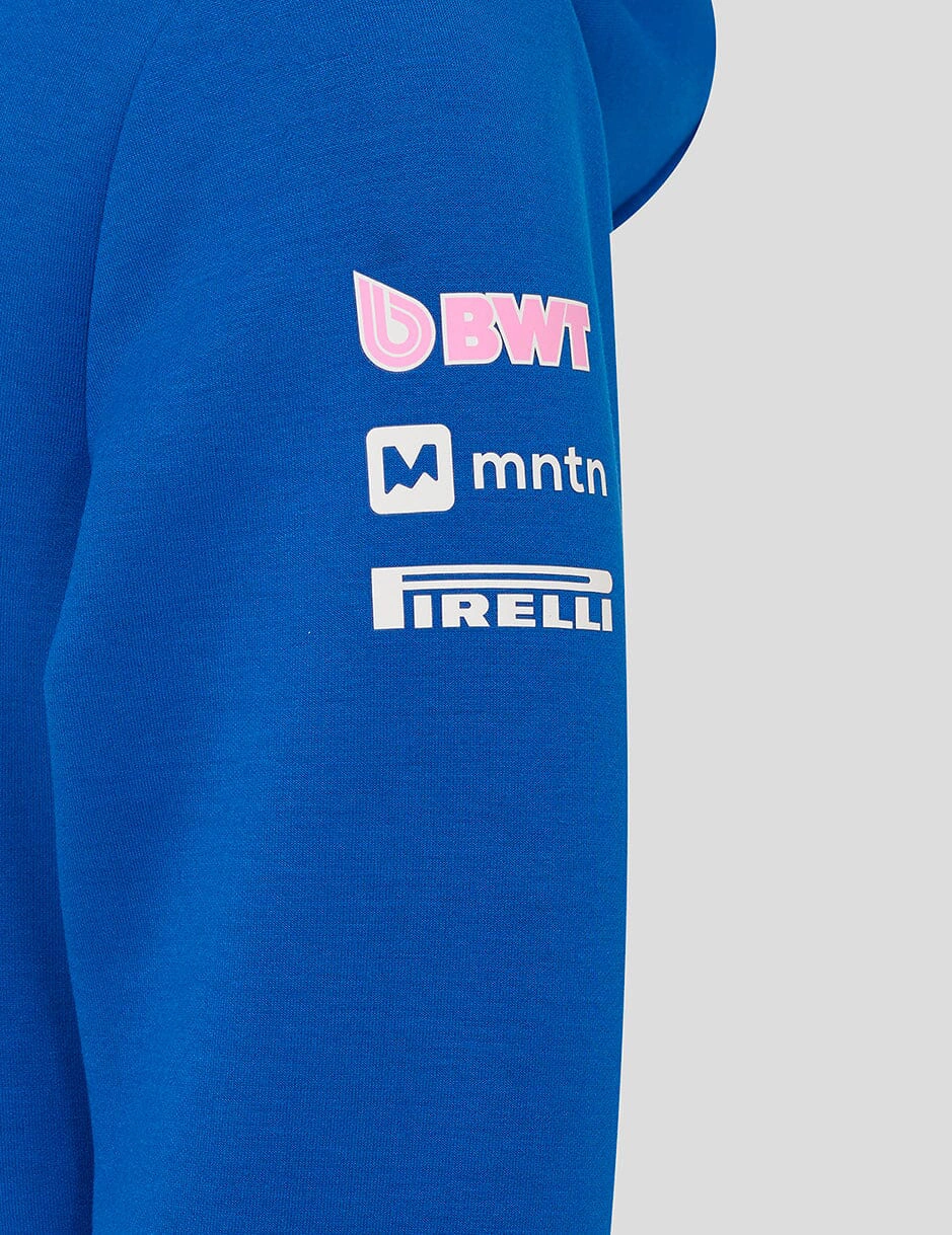 The official junior’s BWT Alpine F1 Team hoodie for the 2025 season combines comfort and functionality, making it perfect for everyday wear. The full-length zipper ensures ease of use, while spacious pockets provide secure storage for small essentials. Elasticated cuffs and hem offer a snug fit for added warmth and style.