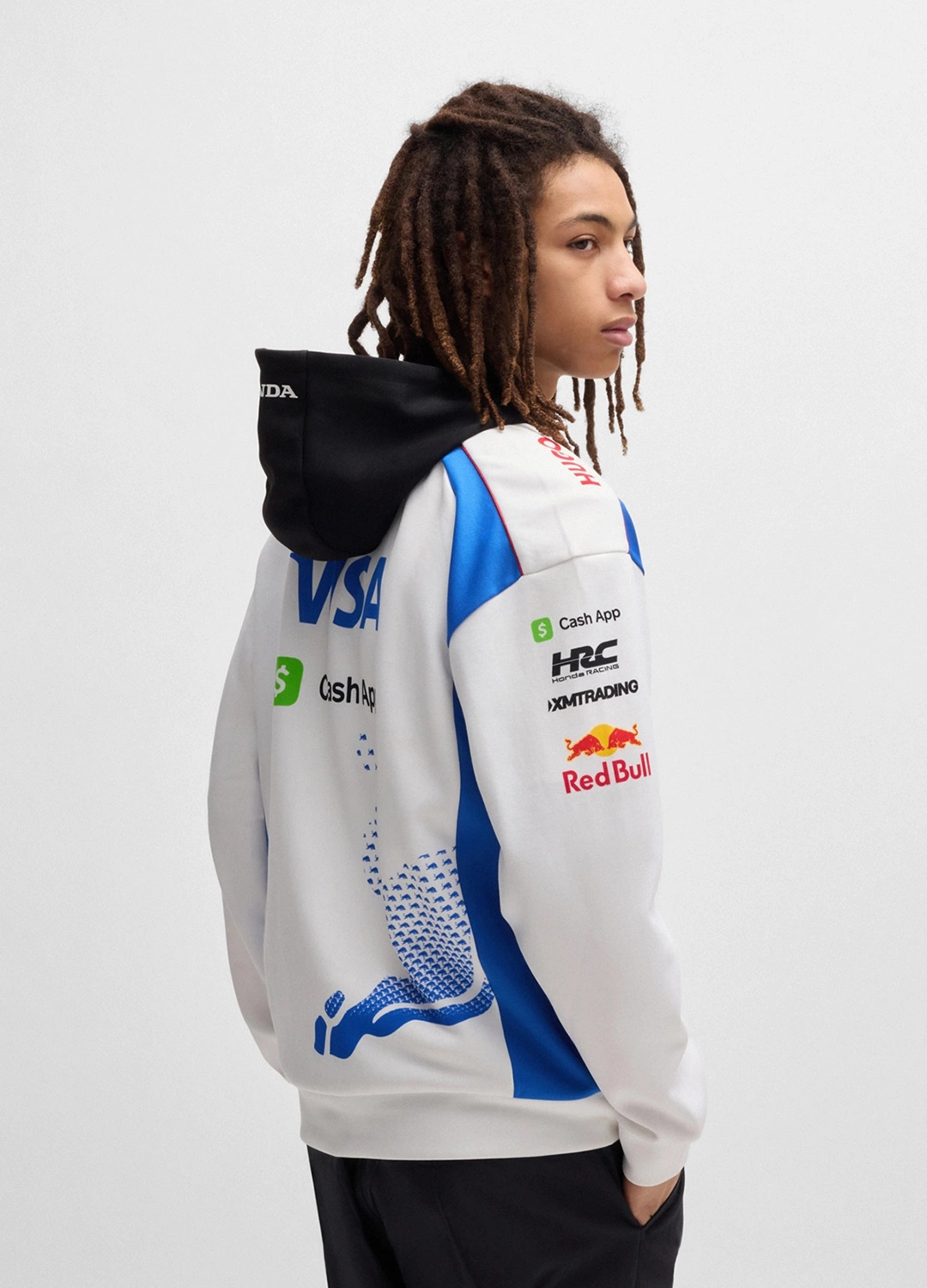 The official Visa Cash App RB Formula One Team hoodie by Hugo Boss for the 2025 season combines comfort with top-tier craftsmanship. Designed for fans, it offers everyday wearability while refined details emphasize its unique character.