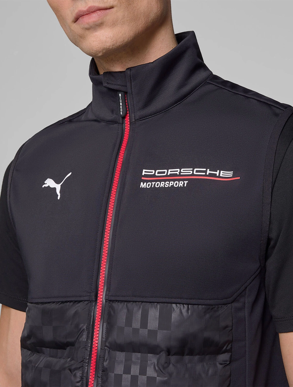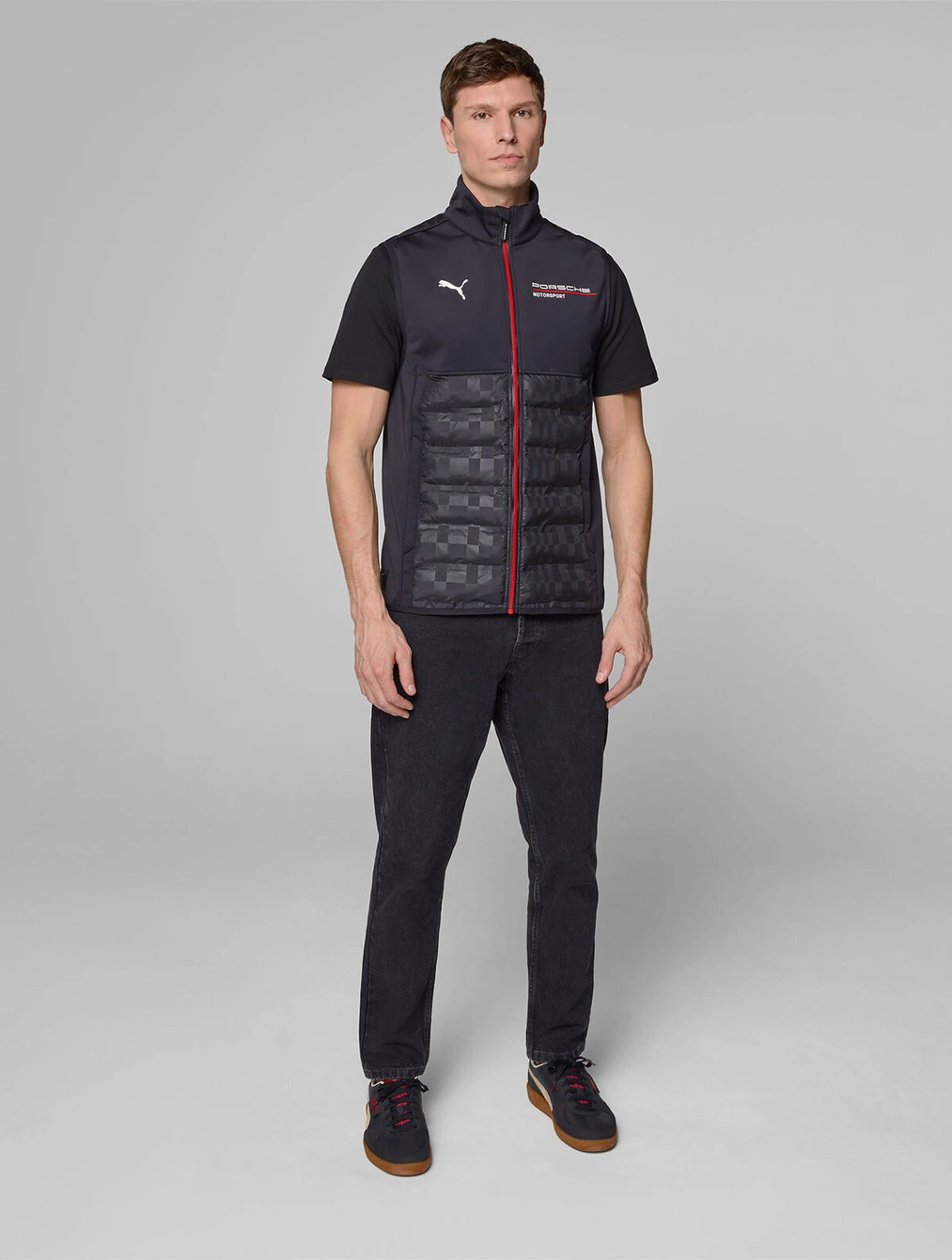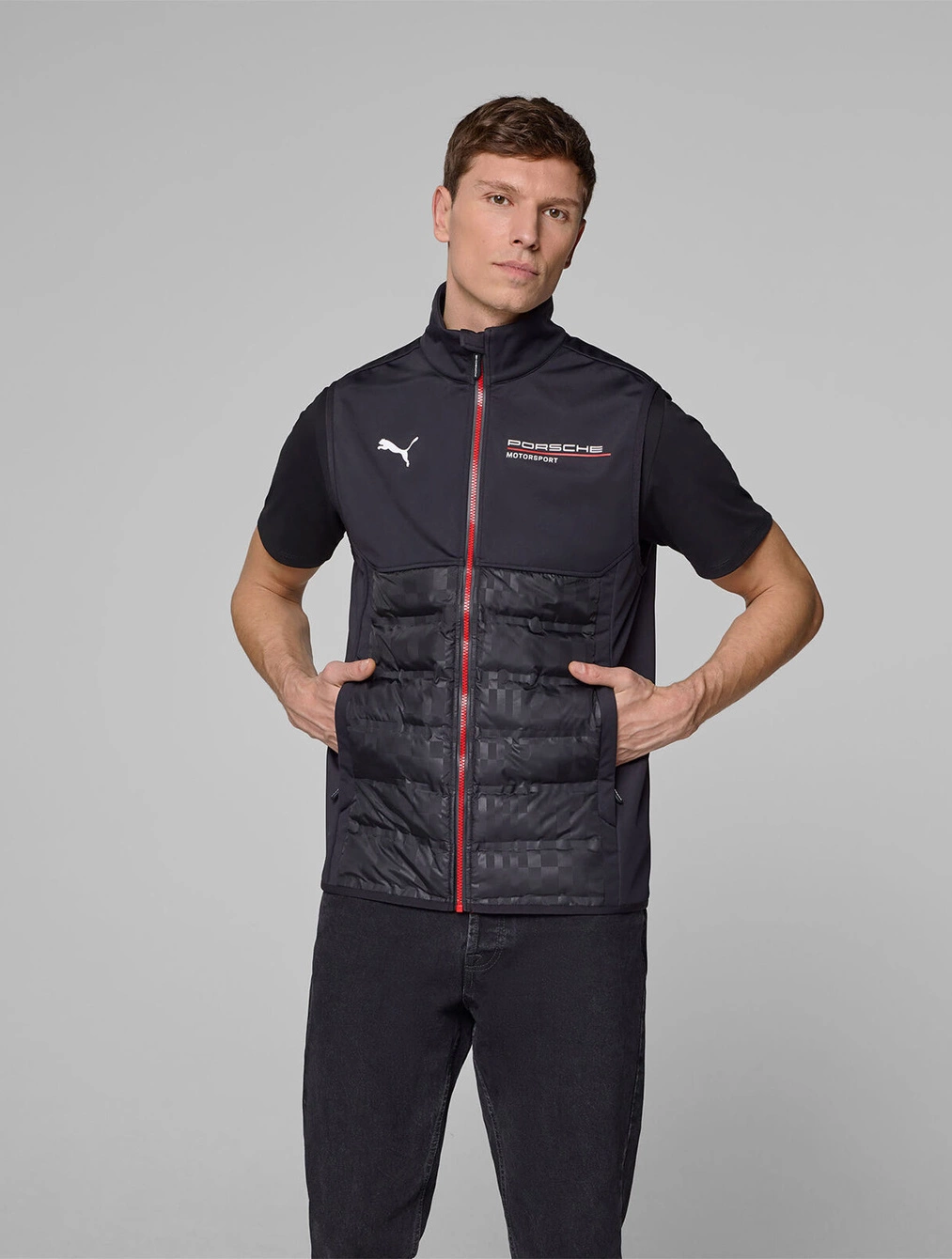 The Porsche Motorsport vest is the perfect combination of functionality, comfort, and sporty style inspired by the world of racing. Its lightweight construction and ergonomic fit ensure full freedom of movement while providing effective protection against cold and wind. High-quality materials guarantee durability and all-day comfort regardless of the conditions.