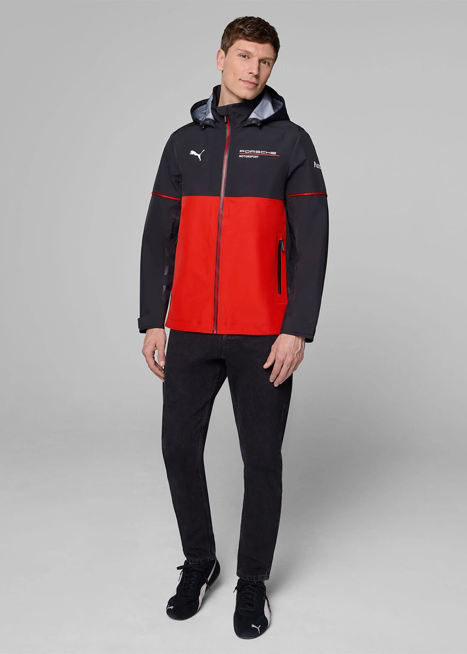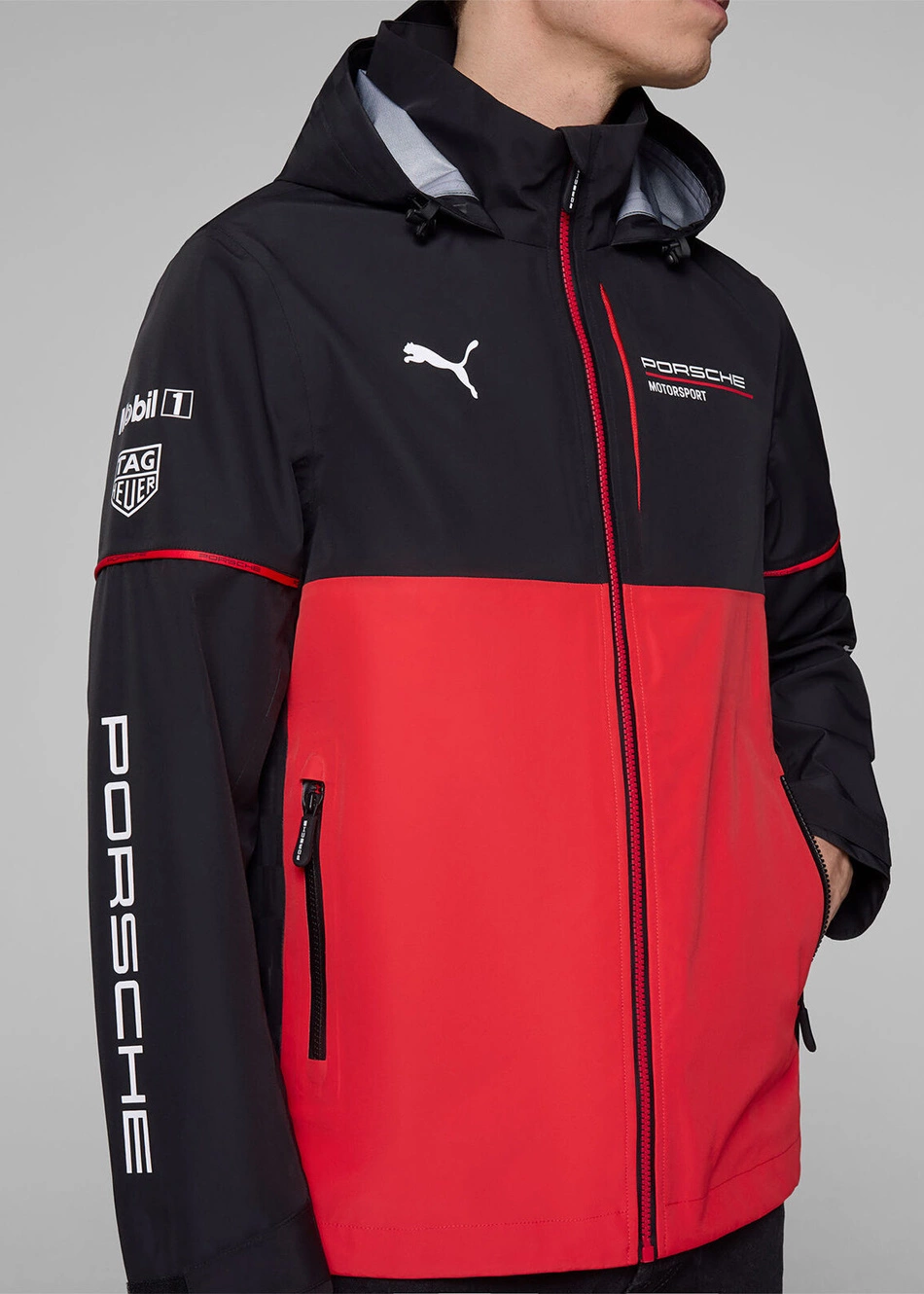 Porsche Motorsport Men's 2025 Team Rain Jacket - Black/Red