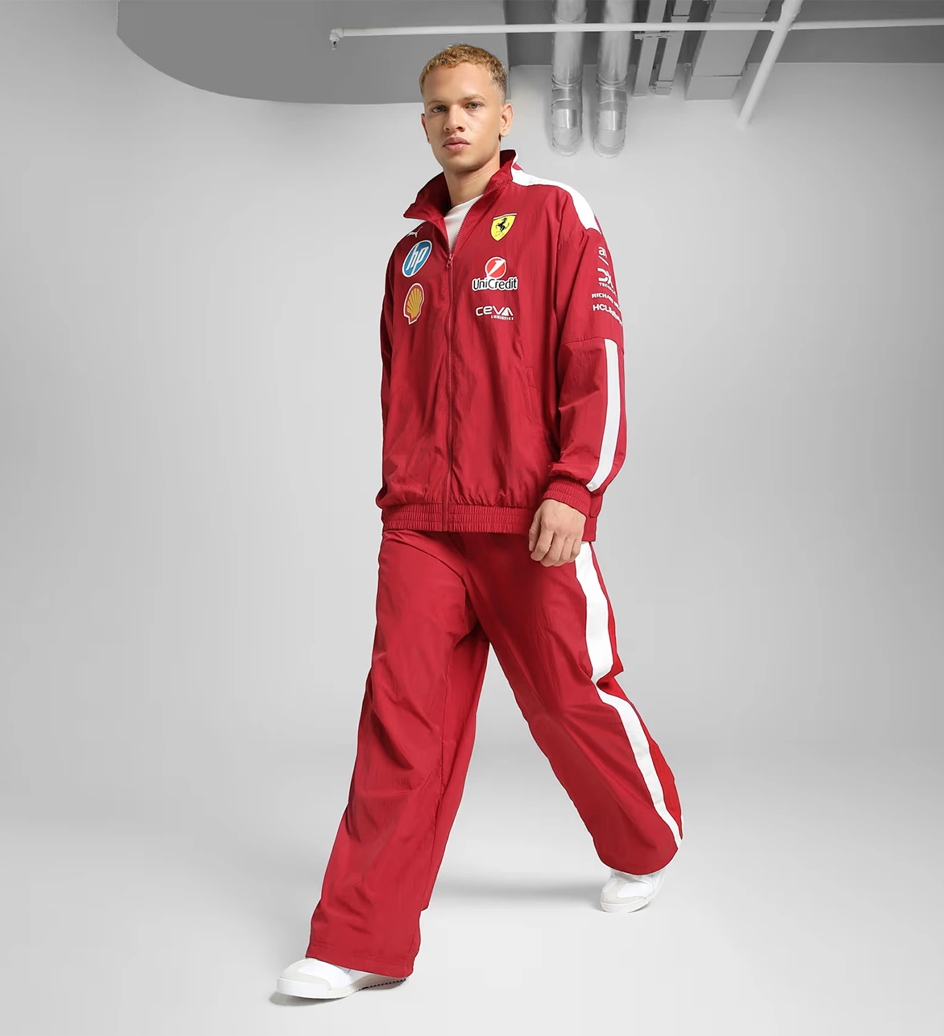 The Scuderia Ferrari F1 2025 Driver's T7 Jacket is an oversized model that combines motorsport style with everyday comfort. The contrasting PUMA T7 stripes on the sleeves emphasize the dynamic character of the design, while the Scuderia Ferrari and sponsor logos highlight its Formula 1 identity. Made from soft, comfortable materials — perfect for daily wear.