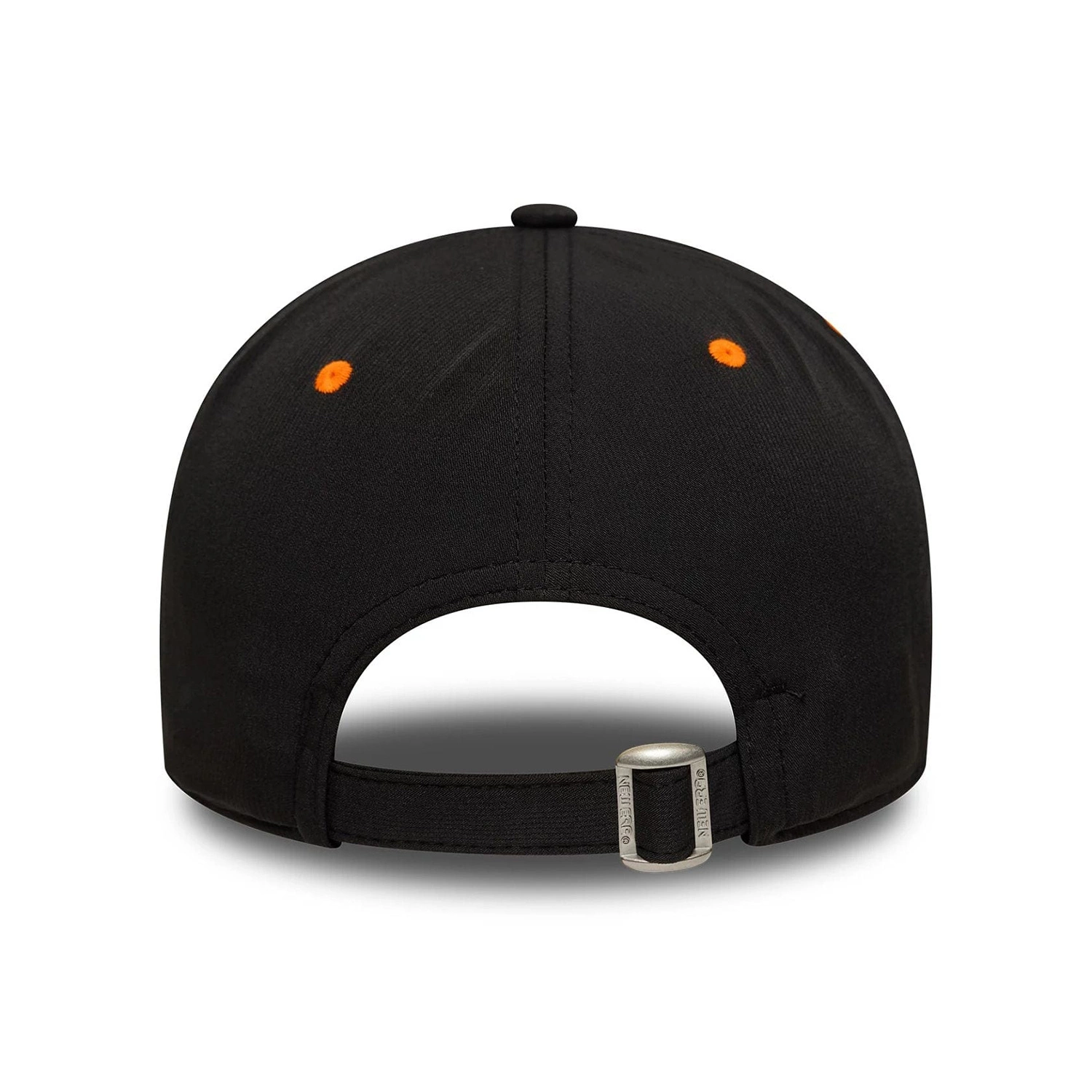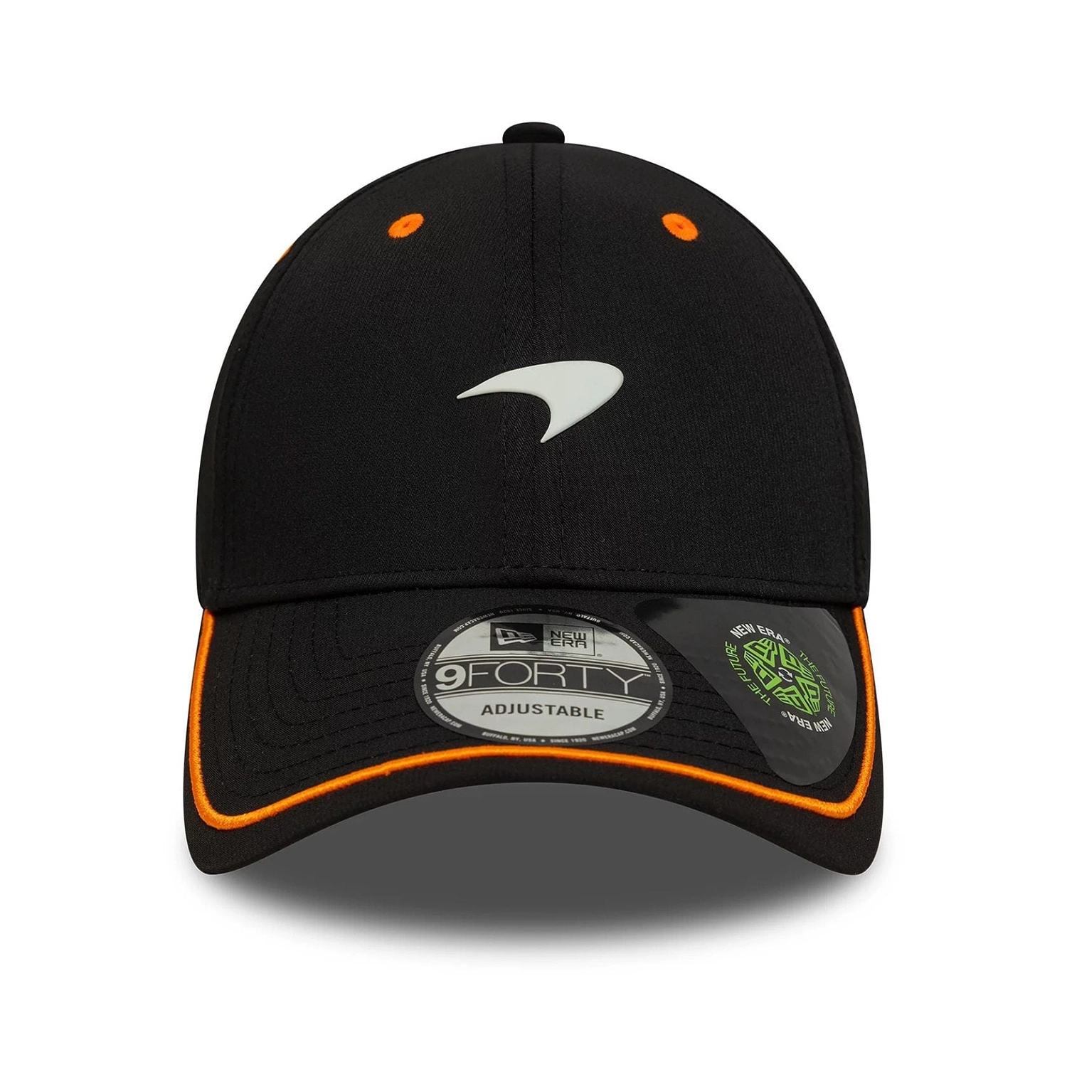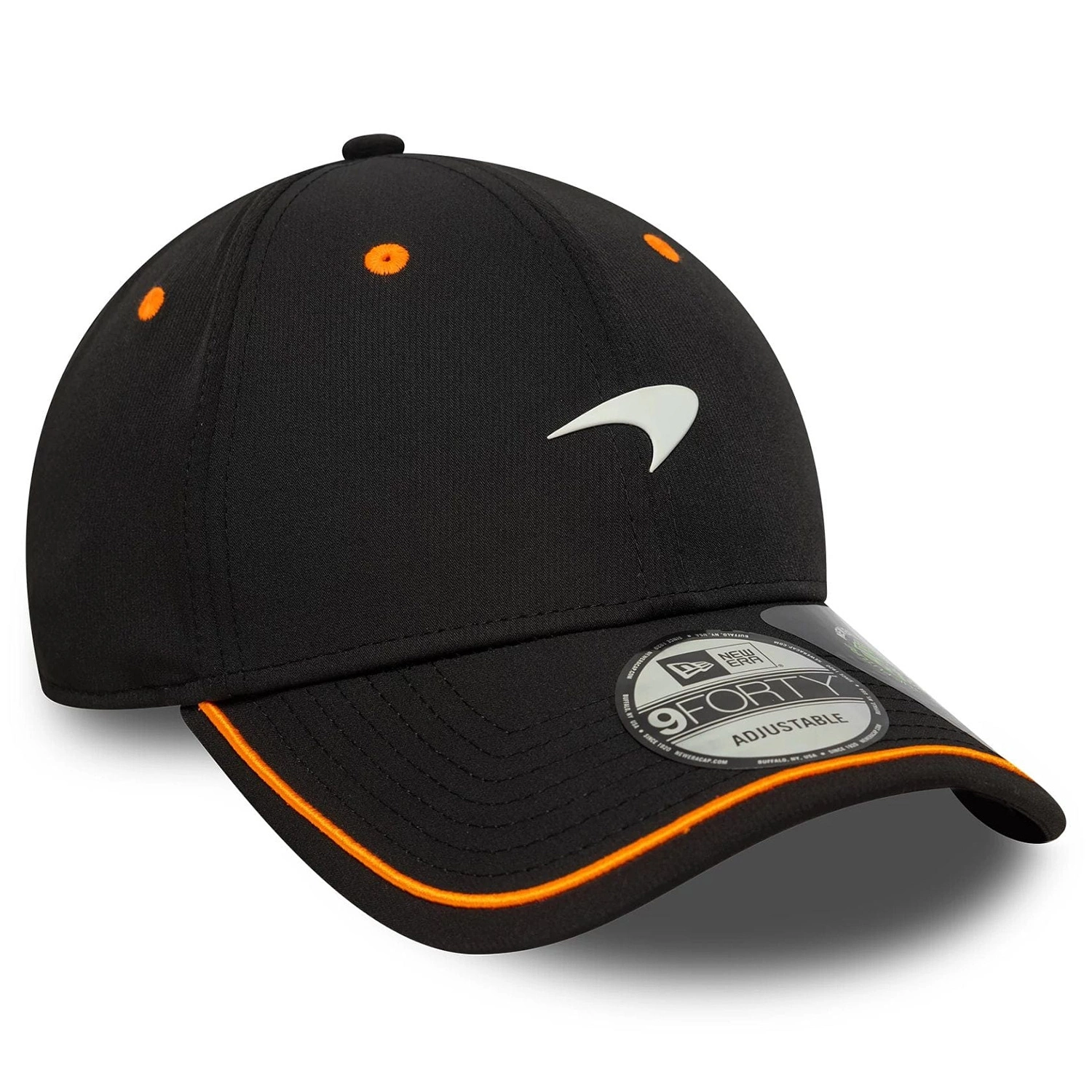 The official McLaren F1 Team cap designed by New Era in black with contrasting accents. This 9FORTY model features a structured front panel, curved brim with piping, and adjustable closure for comfort and a perfect fit. Ideal for Formula 1 fans and supporters of McLaren.