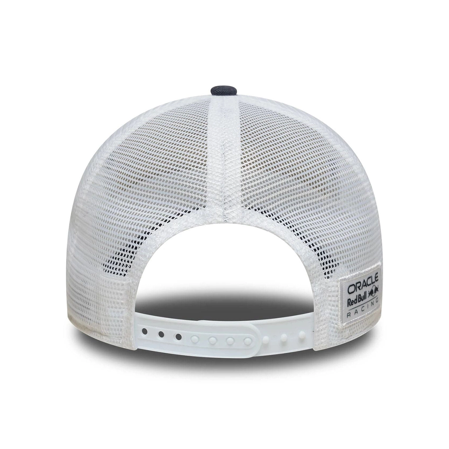 Official Oracle Red Bull Racing trucker cap designed by New Era in a deep navy color. Featuring breathable mesh panels at the back and sides, a curved visor, and an adjustable closure, this cap delivers comfort and sporty style. A perfect choice for Formula 1 fans and Red Bull Racing supporters.