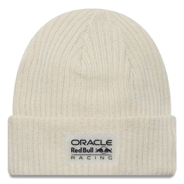 Official winter beanie of the Oracle Red Bull Racing Formula 1 Team, designed by New Era in a stylish cream color. Made from recycled Repreve yarns, this beanie blends sustainability with comfort and a clean, minimalist look. A perfect pick for Formula 1 fans and Red Bull Racing supporters.