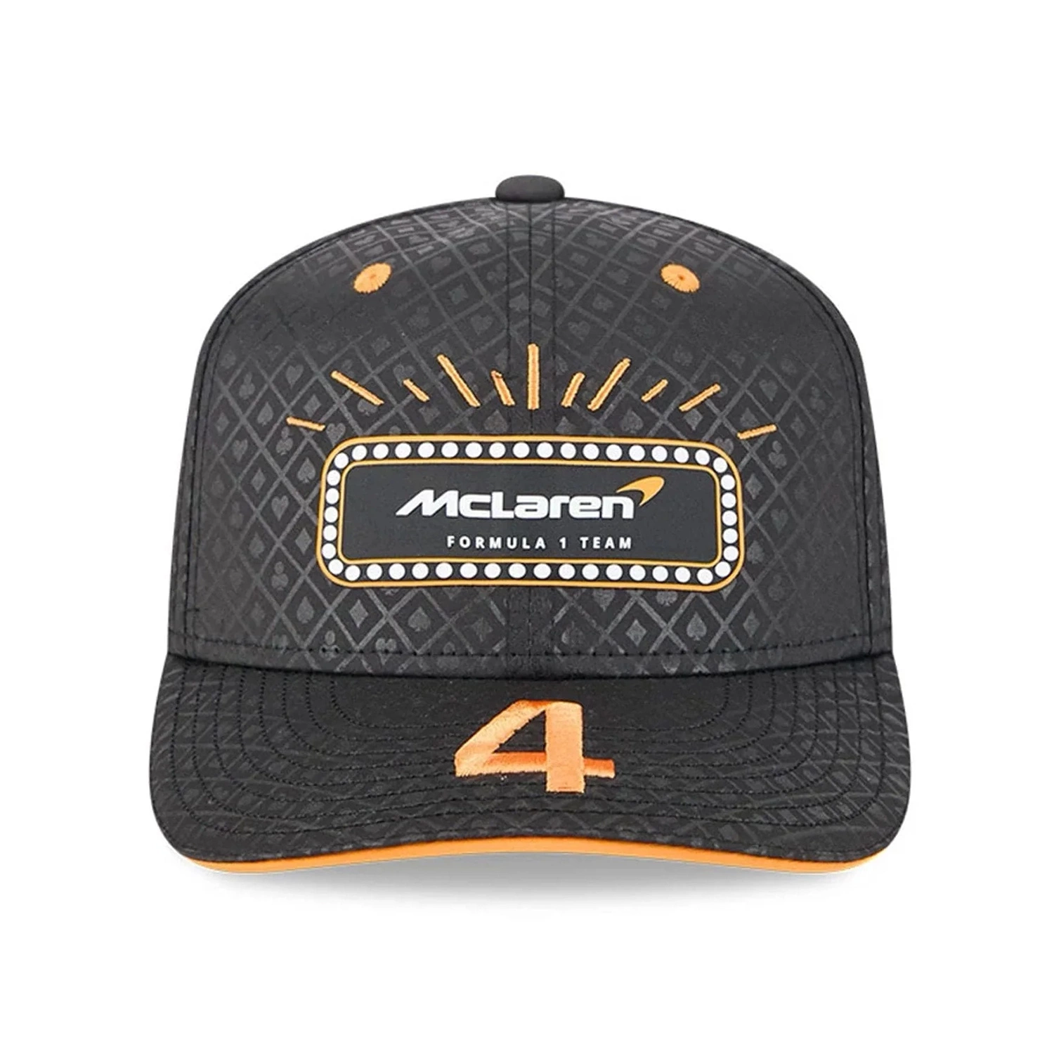 Limited edition McLaren F1 Team cap by New Era, created exclusively for the 2025 Las Vegas Grand Prix and dedicated to Lando Norris. The design, inspired by the iconic night race through the streets of Las Vegas, is highlighted with personalized driver details. Made from lightweight, breathable materials, this cap ensures comfort and a perfect fit – ideal for everyday wear or the high-energy race weekend atmosphere.