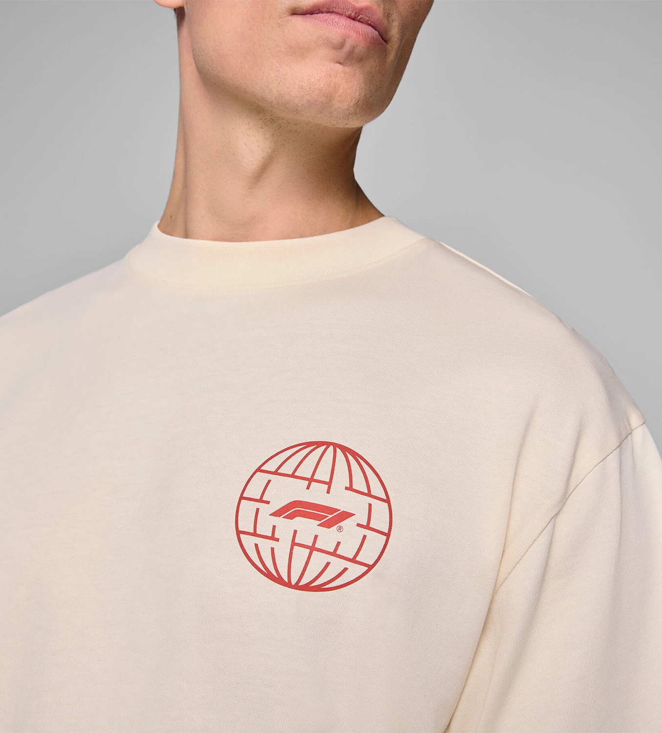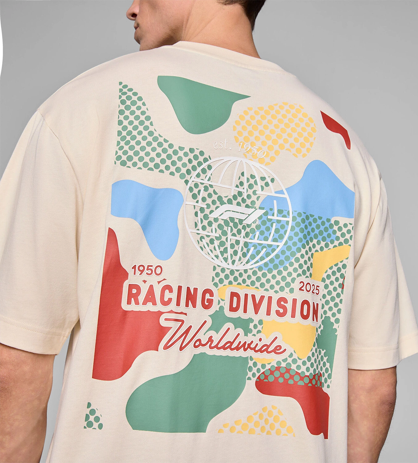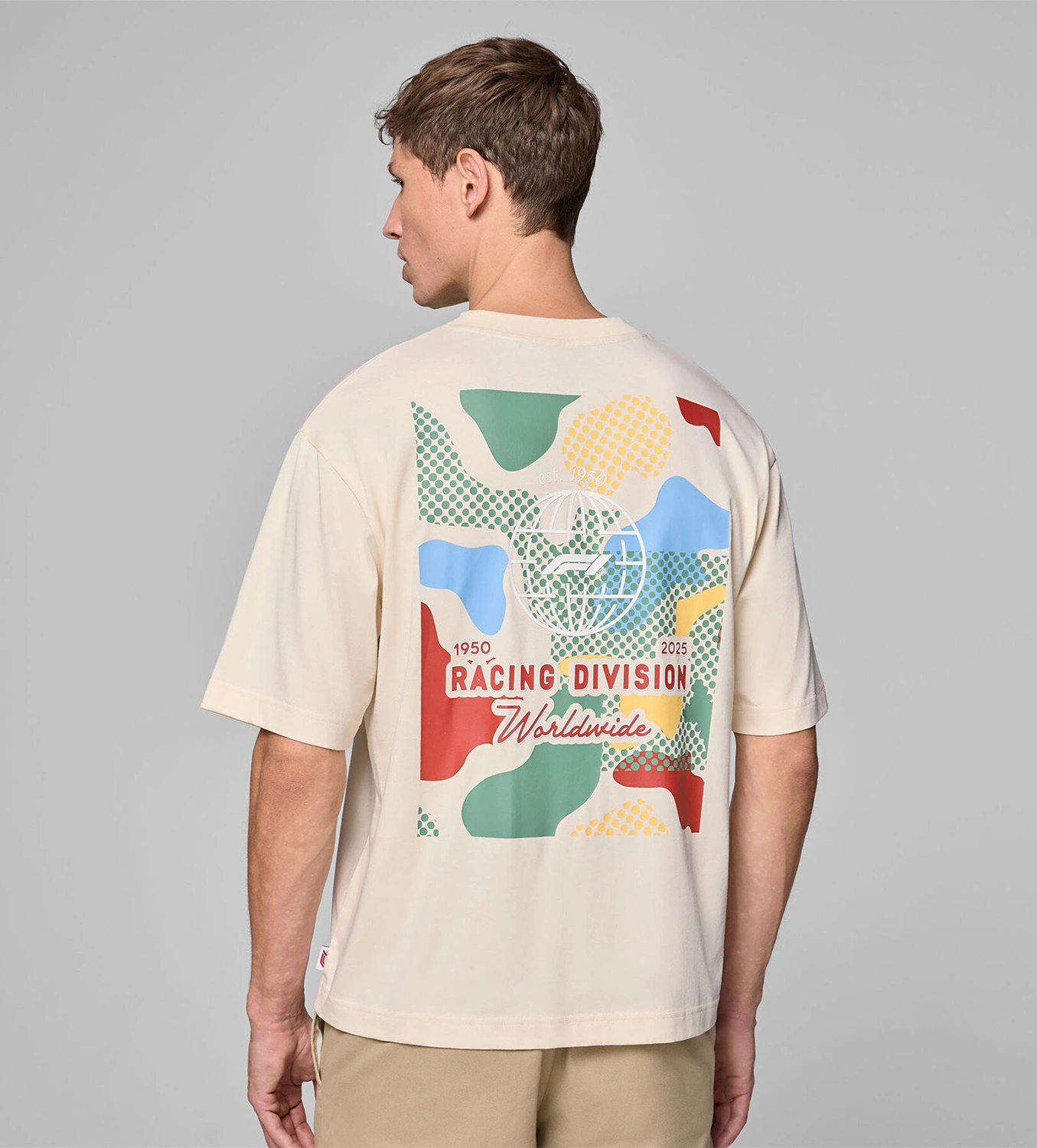The F1 Camo Graphic T-Shirt celebrates 75 years of Formula 1 history. Made from 100% organic cotton, it combines comfort and style with a relaxed fit and a unique, colorful camo-inspired graphic. Perfect for F1 fans who want to enjoy everyday comfort while showing off their motorsport passion.