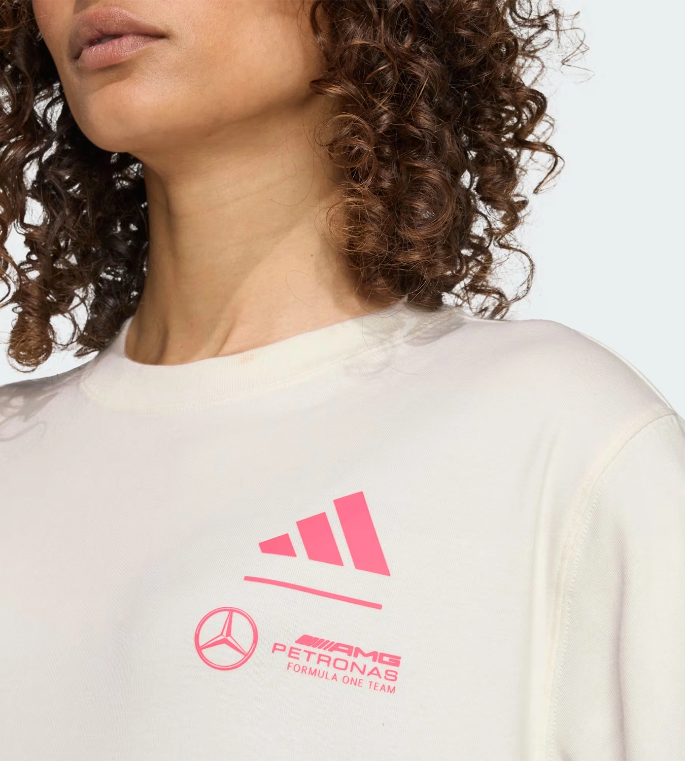 The Mercedes-AMG Petronas F1 Women’s T-Shirt from the adidas Motorsport collection combines comfort and style for everyday wear. Whether you’re at the racetrack or watching the race at home, this T-shirt ensures a perfect fit and lasting comfort. Made from soft cotton with added elastane, it offers excellent flexibility, while the official Mercedes-AMG Petronas Formula One Team branding gives it an authentic racing look.