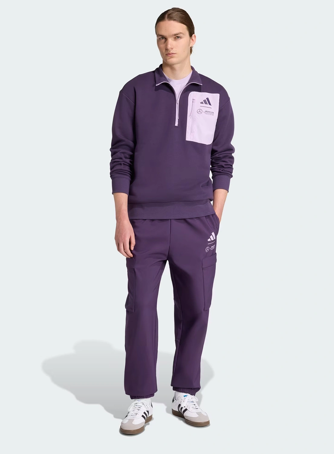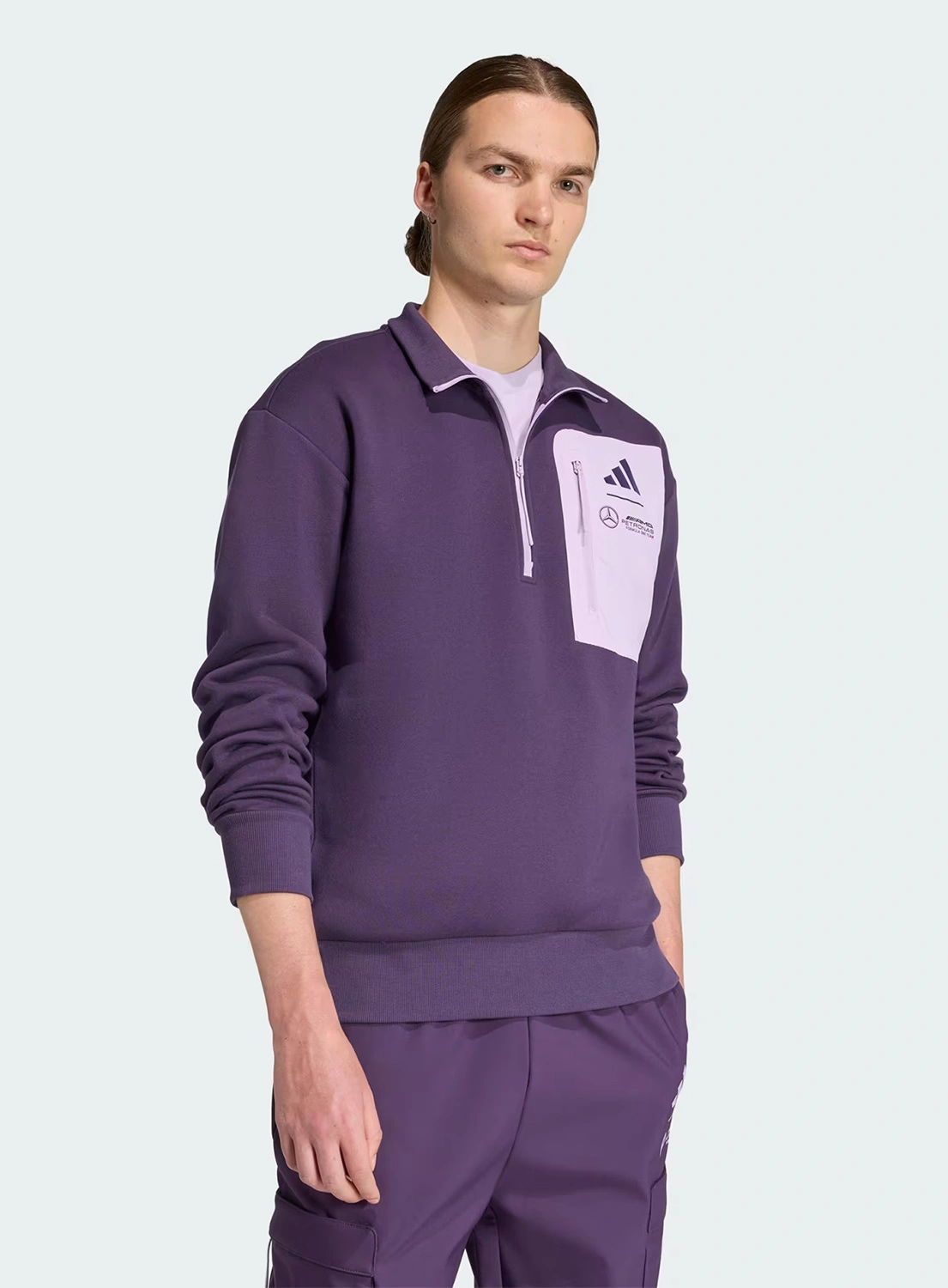 The Mercedes-AMG Petronas F1 Premium Woven Fleece is part of the adidas Motorsport collection, designed for everyday comfort and practical functionality. Made from a blend of cotton and recycled polyester, it provides warmth and a comfortable feel for daily wear. The half-length zip and stand-up collar offer added protection against cooler temperatures, while the zippered chest pocket adds a distinctive and practical detail. The Mercedes-AMG Petronas Formula One Team branding and iconic three-stripe logo complete the authentic motorsport look.