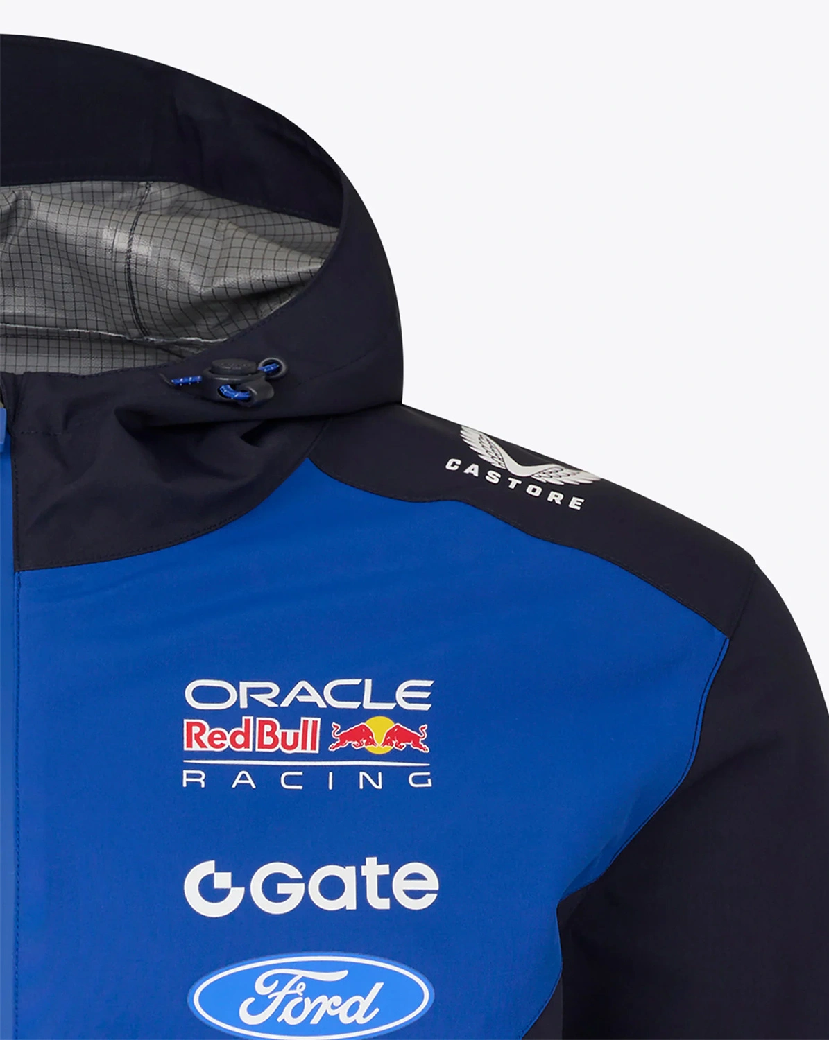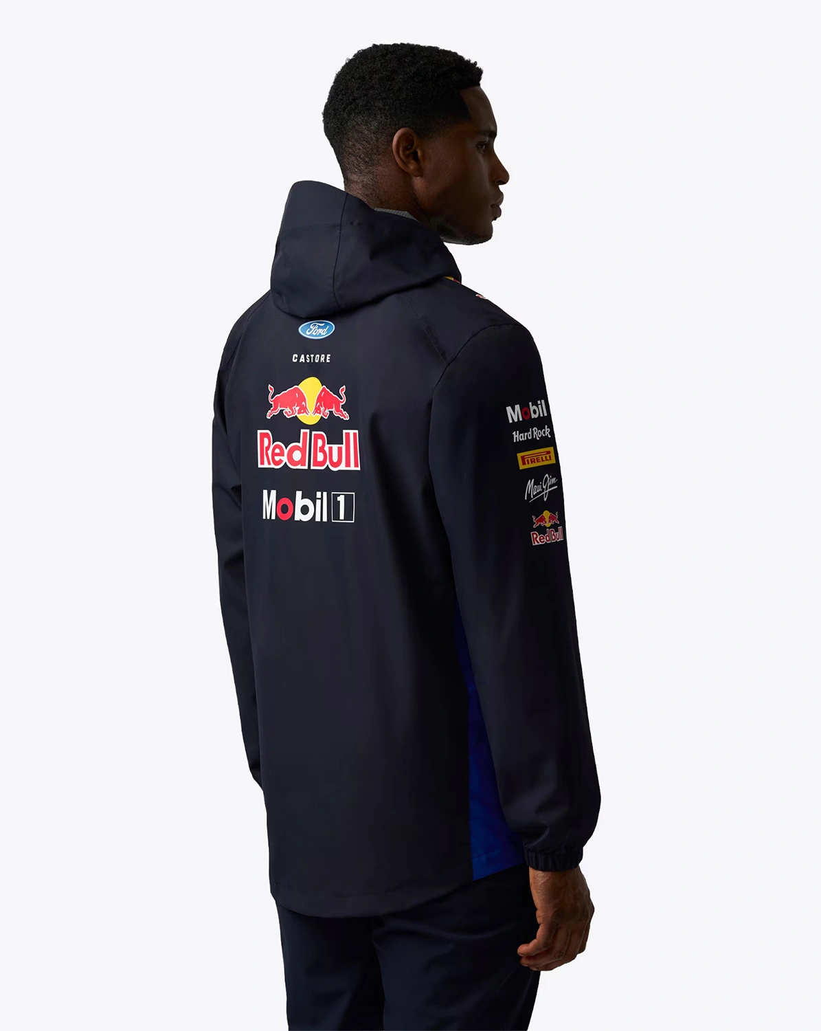 Official Oracle Red Bull Racing rain jacket by Castore from the latest team collection for the 2026 season. Made from a fabric designed to perform well in rainy and windy conditions, it provides added protection against moisture. ProTek technology helps reduce water penetration, making this jacket a great choice for race weekends and everyday wear when the weather can be unpredictable. The look is completed with a new colourway and official team and partner logos.