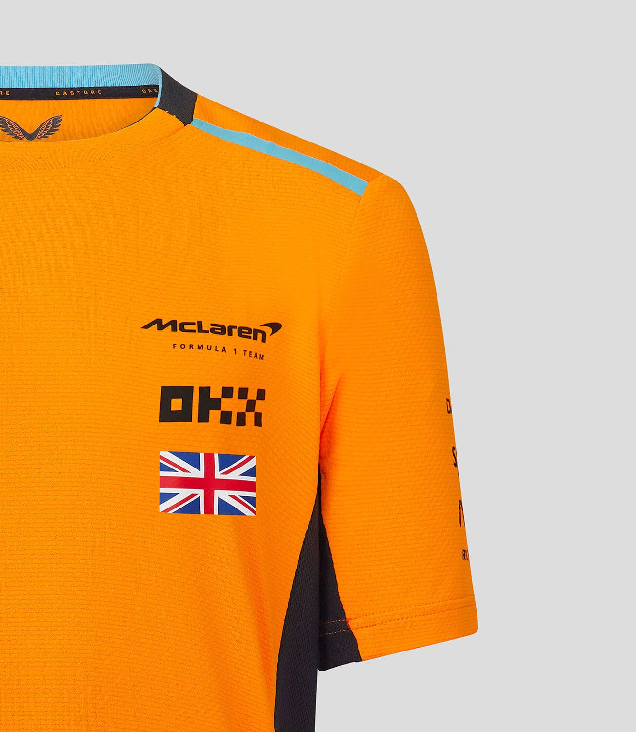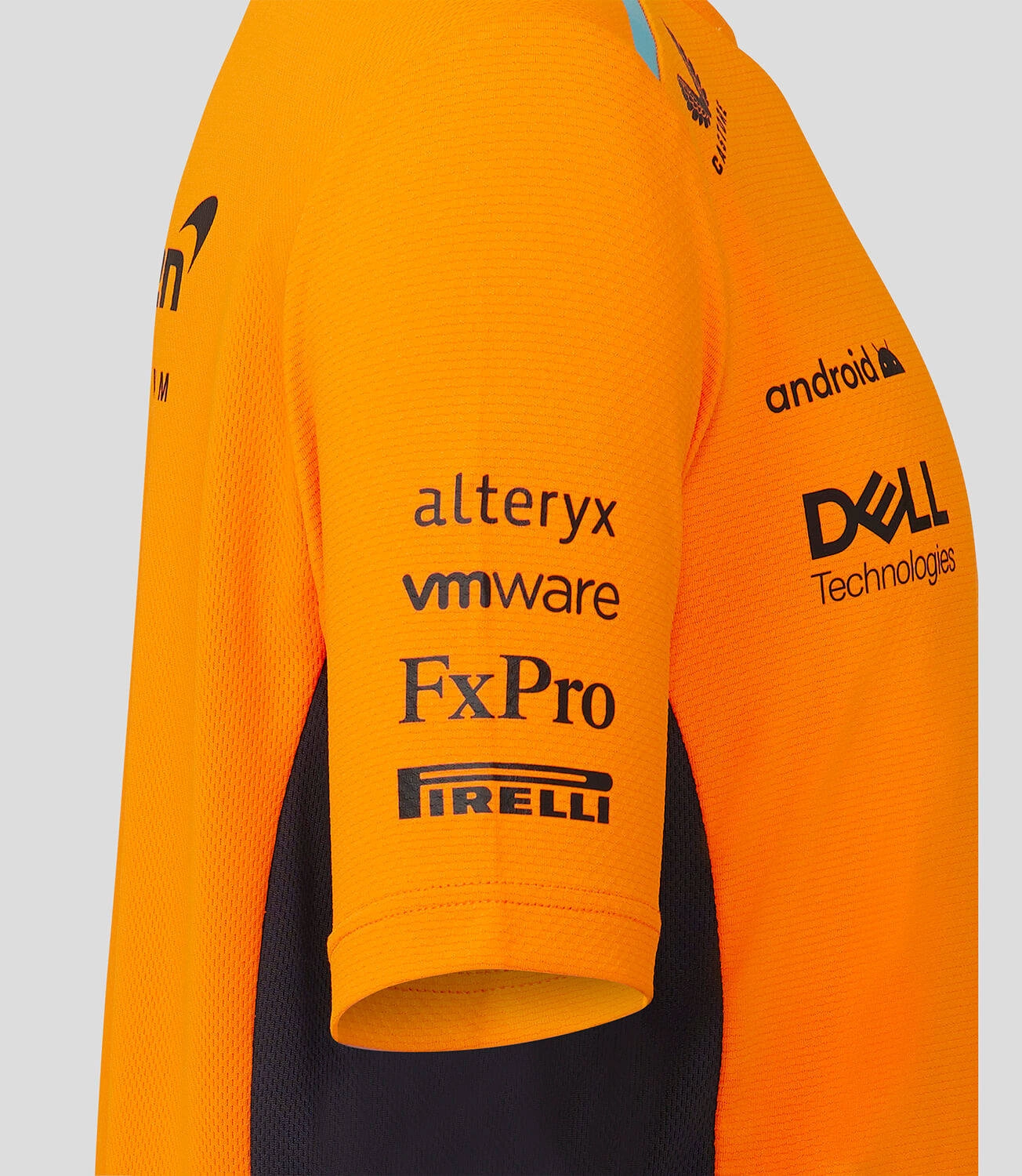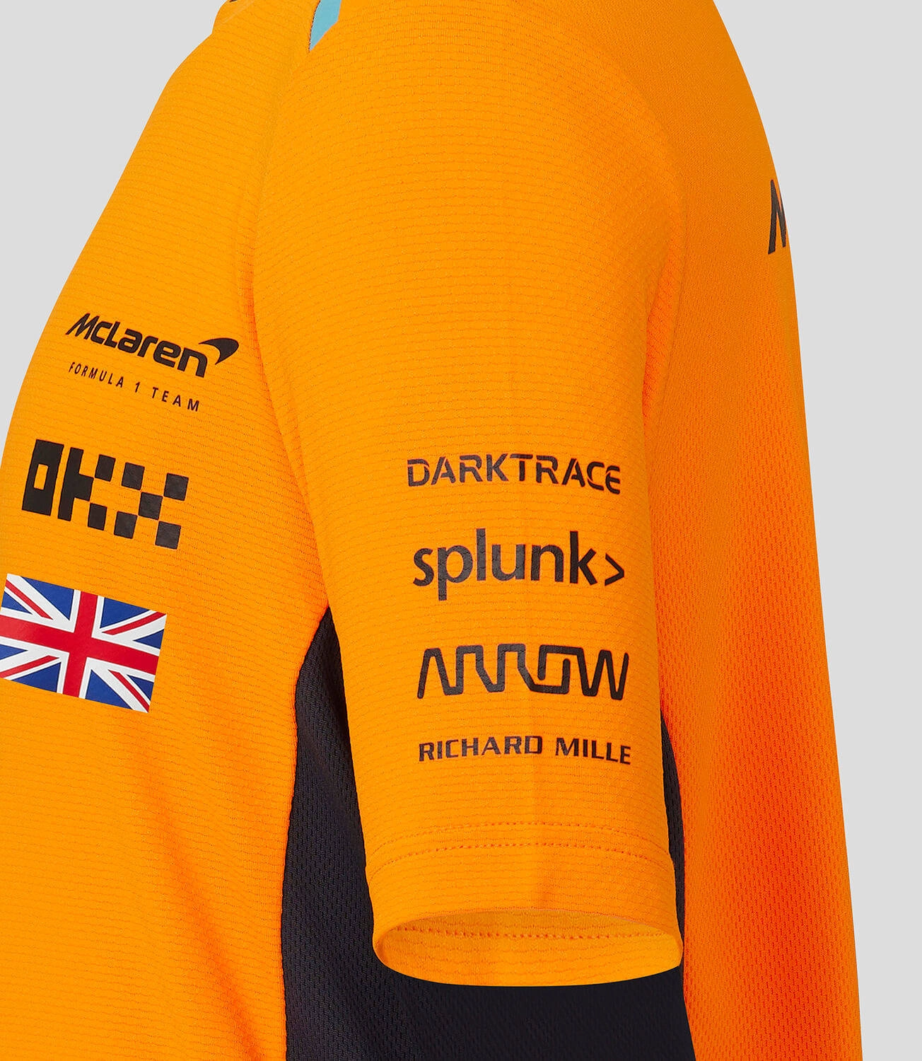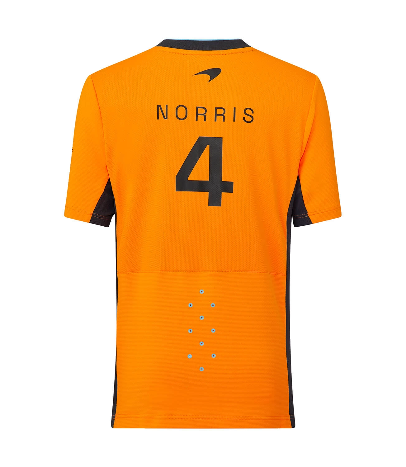 Młodzieżowy t-shirt McLaren F1 Lando Norris 2023 wykonany z lekkiego i oddychającego materiału. Przygotuj się na pełne emocji wyścigi nosząc tę niepowtarzalną koszulkę. Bądź częścią ekipy, którą Lando Norris reprezentuje na torze i poza nim.