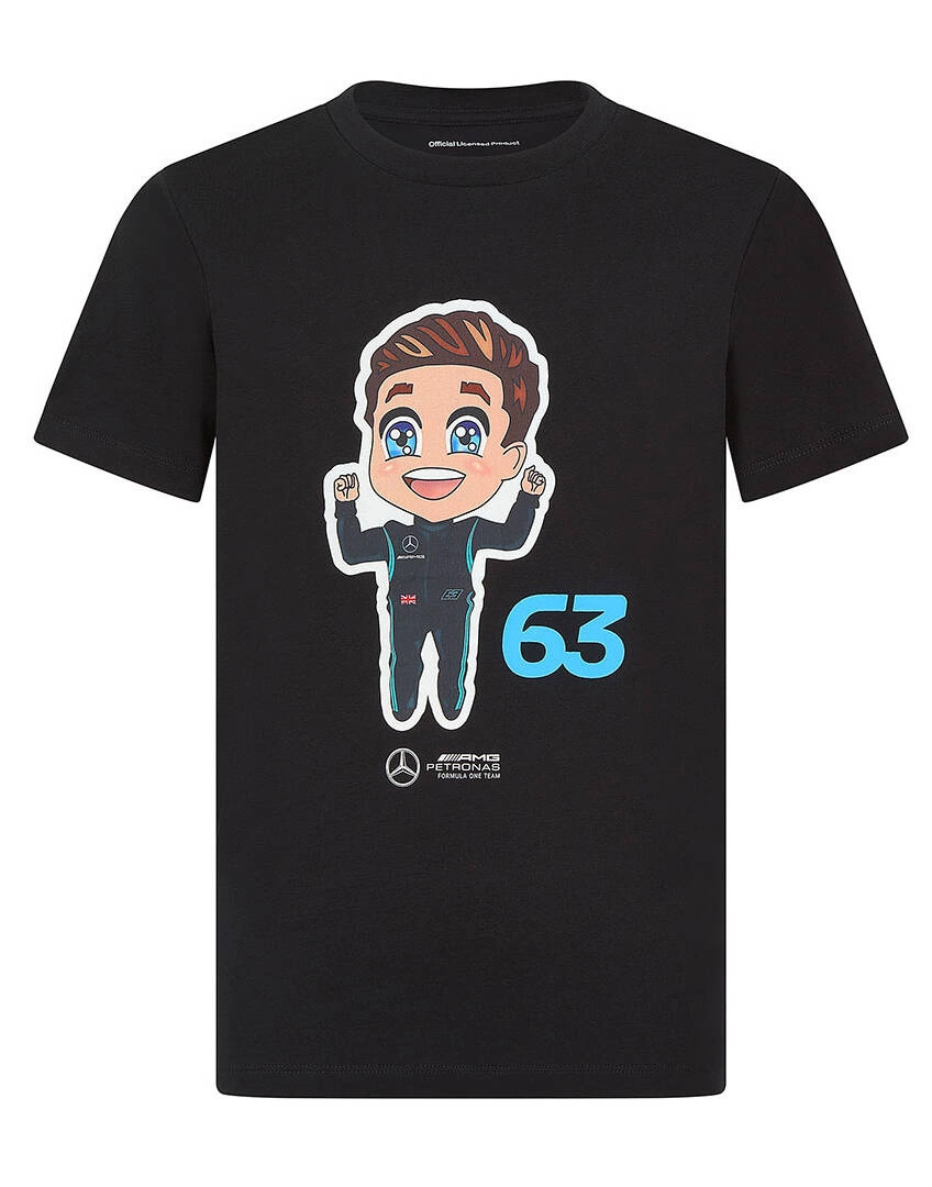 Koszulka Mercedes-AMG Petronas F1 George Russell Caricature to gwarancja autentyczności i najwyższej jakości. Koszulka pochodzi z oryginalnej kolekcji zespołu, co podkreśla jej wyjątkowy charakter i doskonałe wykonanie.