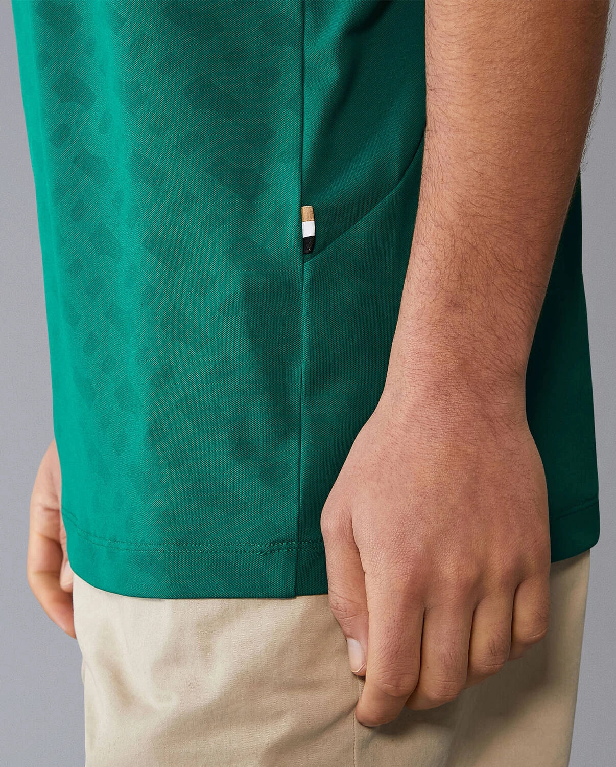 - Tkana metka z logo BOSS na bocznym szwie