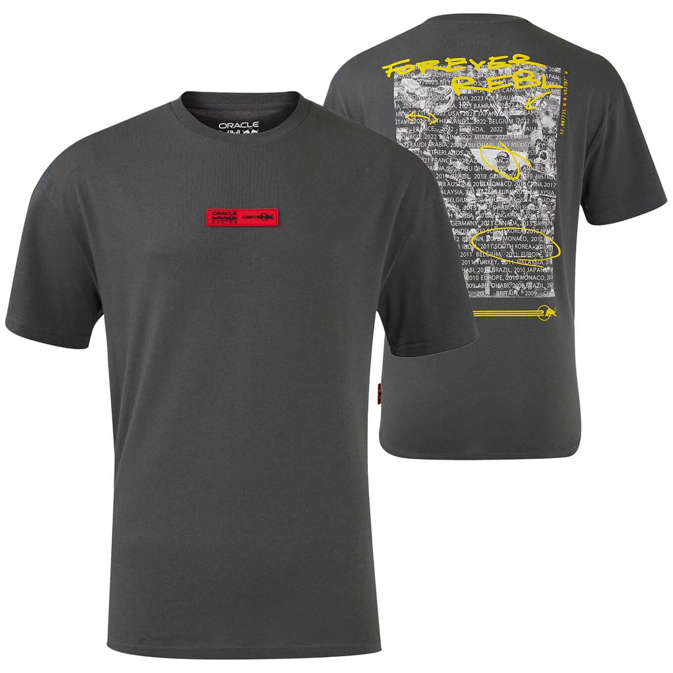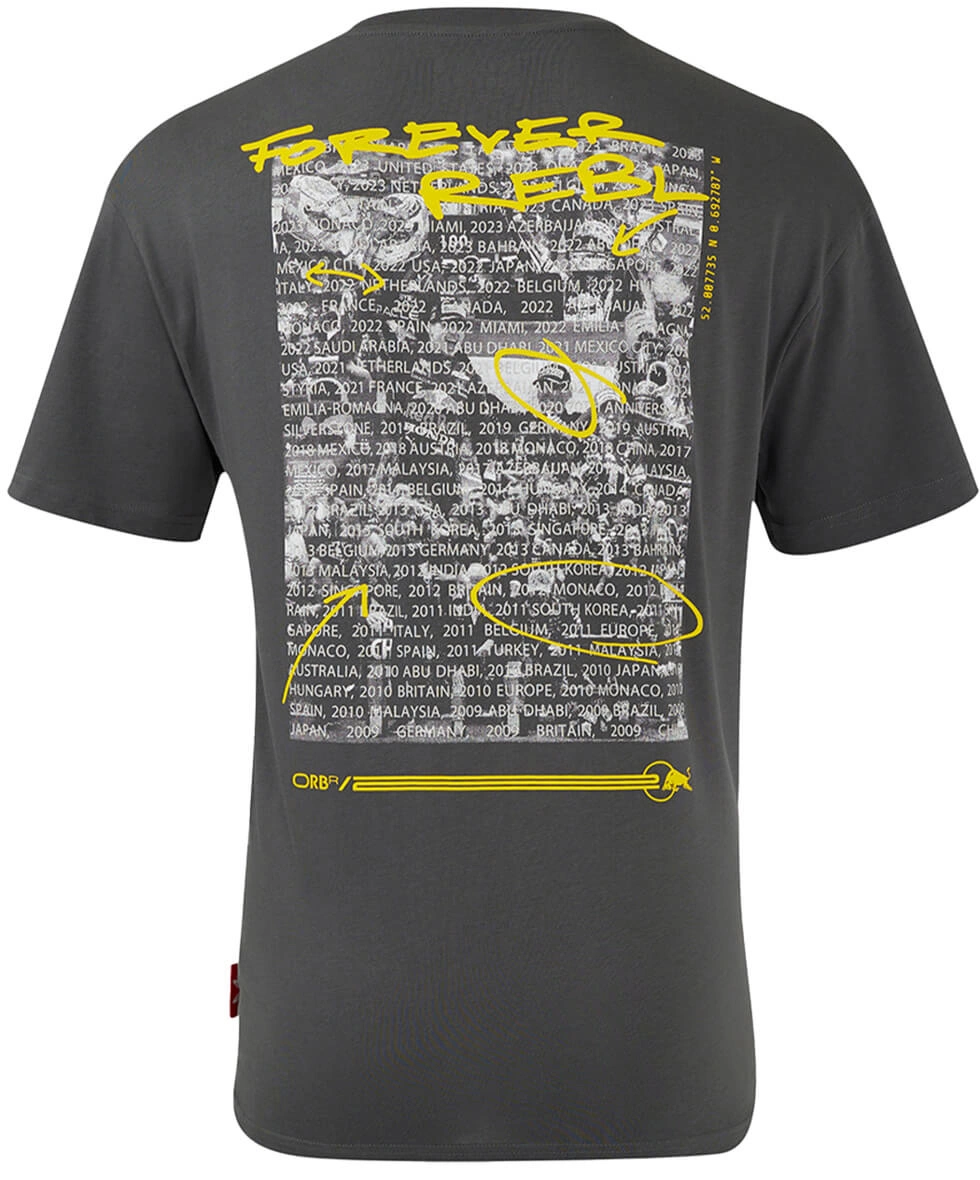 T-shirt Oracle Red Bull Racing to trwała pamiątka pierwszych dwóch dekad zespołu w F1. Koszulka ma ogromny nadruk na plecach z kluczowymi obrazami z historii zespołu i datami zwycięskich wyścigów, a także logo rocznicowe ORBR/20 na piersi, aby pokazać wszystkim, który zespół napędza Twoją pasję i dumę.