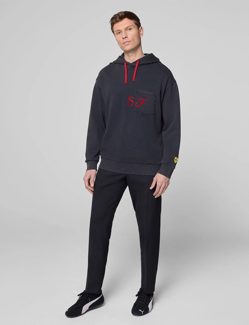 Bluza z kapturem Scuderia Ferrari Graphic z efektem sprania, który nadaje jej znoszonego wyglądu. Bluza wykonana jest z miękkiej dzianiny, która jest gładka na zewnątrz i miękka po stronie wewnętrznej, dzięki czemu zapewnia wygodę i ciepło przez cały dzień.