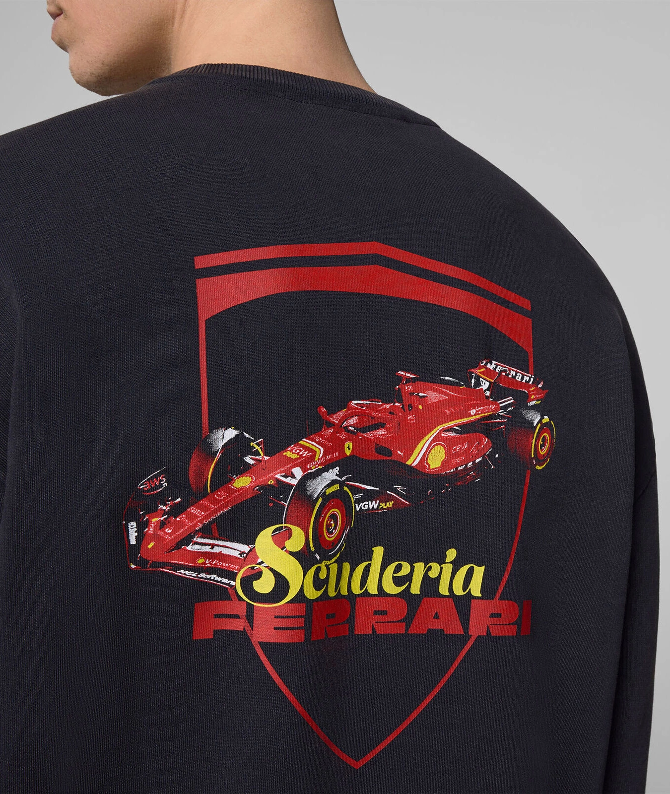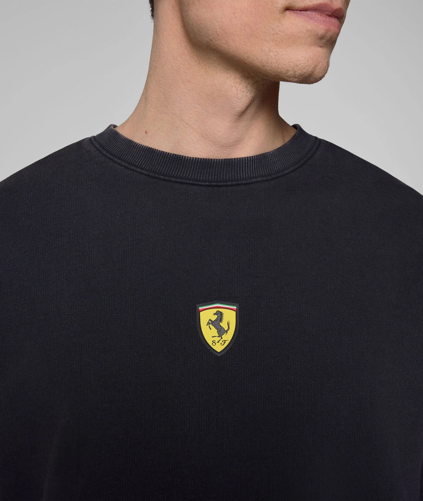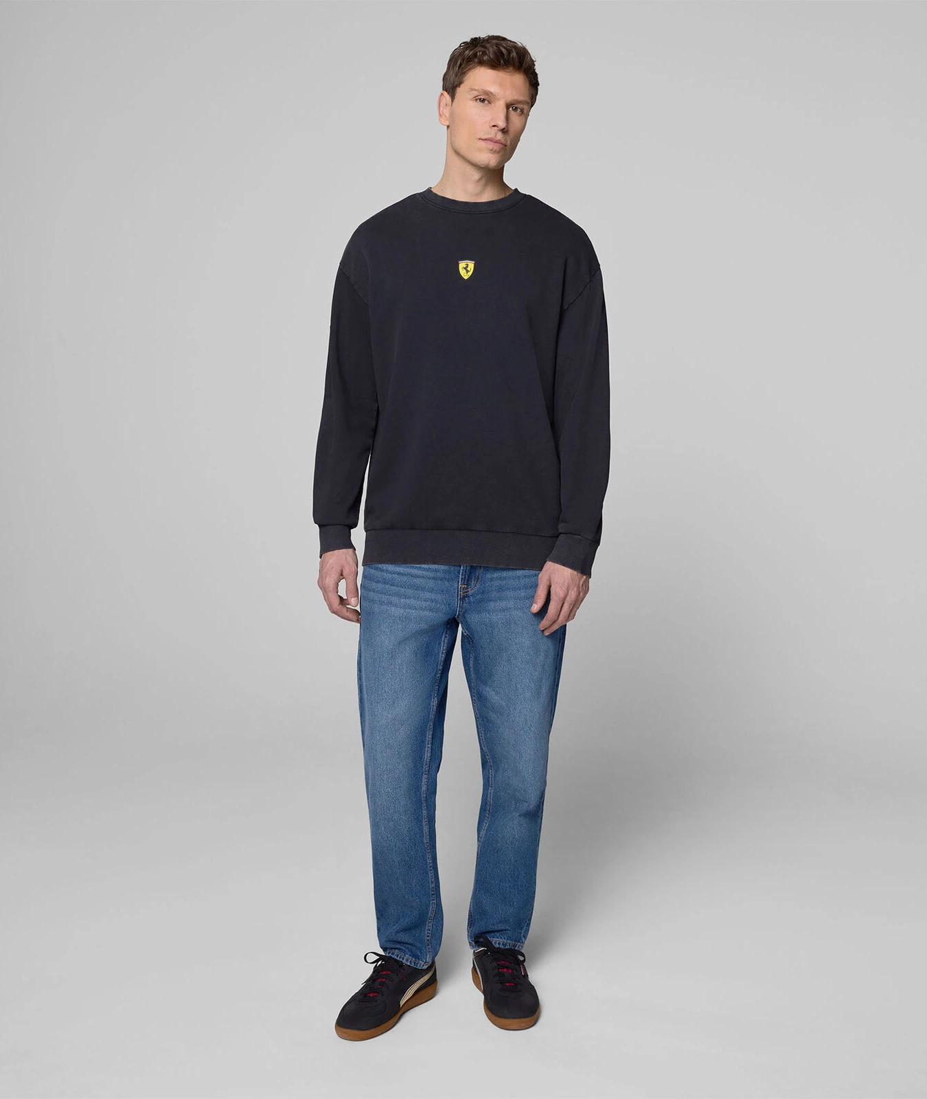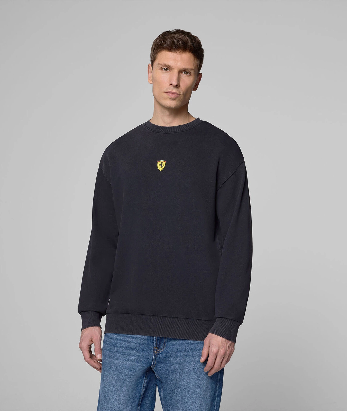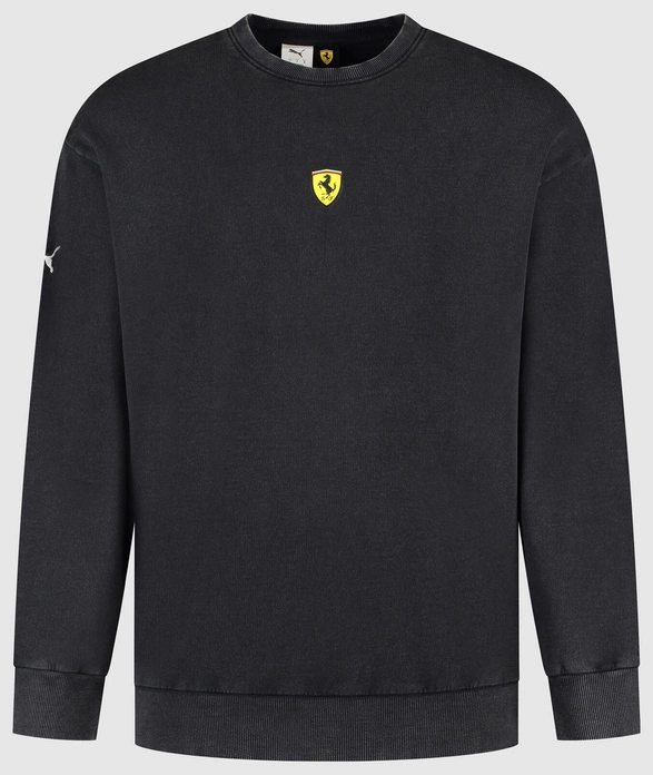 Bluza Scuderia Ferrari Driver Crew z efektem sprania, który nadaje jej znoszonego wyglądu. Bluza wykonana jest z miękkiej dzianiny, która jest gładka na zewnątrz i miękka po stronie wewnętrznej, dzięki czemu zapewnia wygodę i ciepło przez cały dzień.