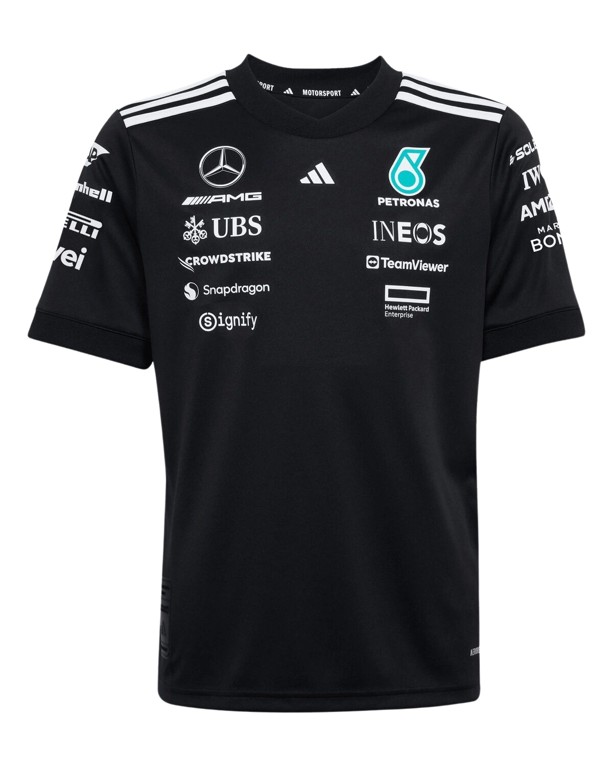 Młodzieżowa wersja oficjalnej koszulki Mercedes-AMG Petronas Formula One Team od marki adidas na sezon 2025. Ta koszulka to dokładna replika stroju, który noszą zawodowi kierowcy, dzięki czemu młodzi fani mogą poczuć się częścią zespołu, kibicując swojemu ulubionemu zawodnikowi. Dzięki technologii AEROREADY, która reguluje wilgoć, koszulka zapewnia przewiewny komfort, zarówno podczas oglądania wyścigów, jak i zabawy na świeżym powietrzu.