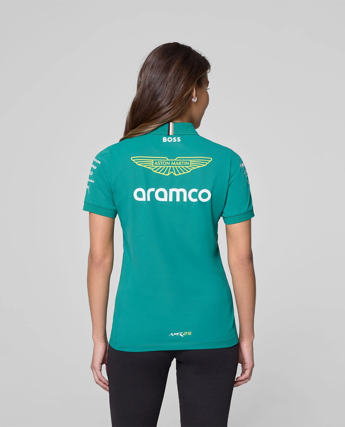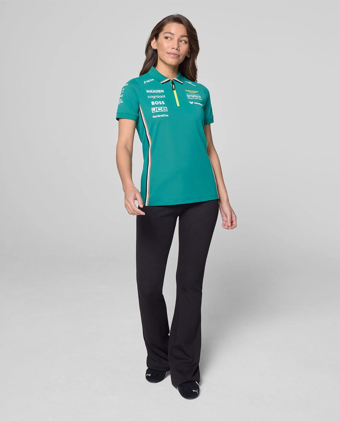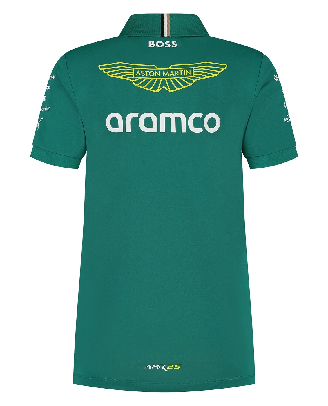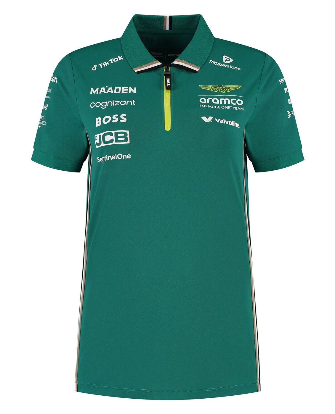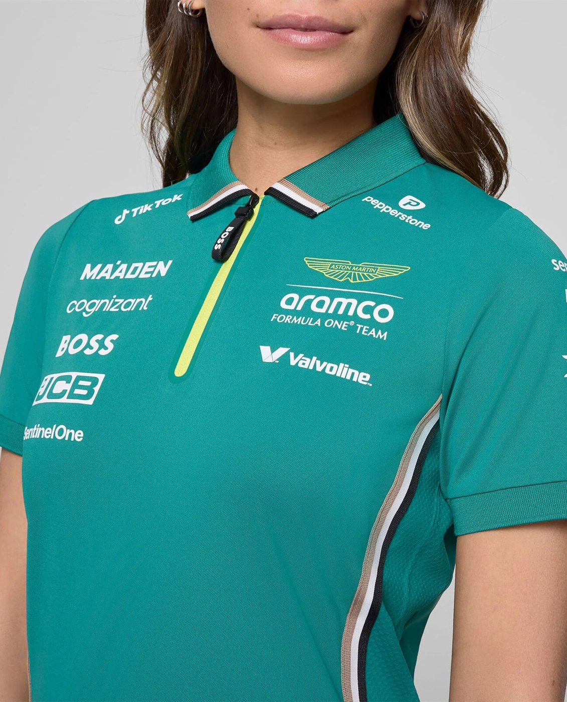 Damska wersja oficjalnej koszulki polo Aston Martin F1 Team na sezon 2025 Formuły 1. Wykonana z lekkiego i przewiewnego materiału, zapewnia komfort oraz swobodę ruchów. Kołnierzyk zapinany na zamek z suwakiem BOSS oraz teksturowane panele boczne zwiększają wygodę noszenia. Koszulkę zdobią oficjalne logotypy Aston Martin Formula One Team i partnerów zespołu.