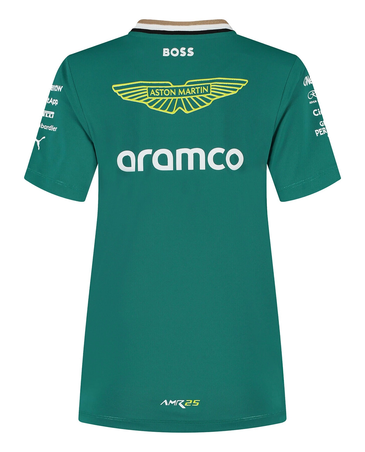 Damska wersja oficjalnej koszulki Aston Martin F1 Team na sezon 2025 Formuły 1. Wykonana z oddychającego materiału odprowadzającego wilgoć, zapewnia komfort w każdych warunkach. Subtelne detale marki BOSS, w tym charakterystyczne akcenty na kołnierzyku i bocznych panelach, nadają całości unikalnego stylu.