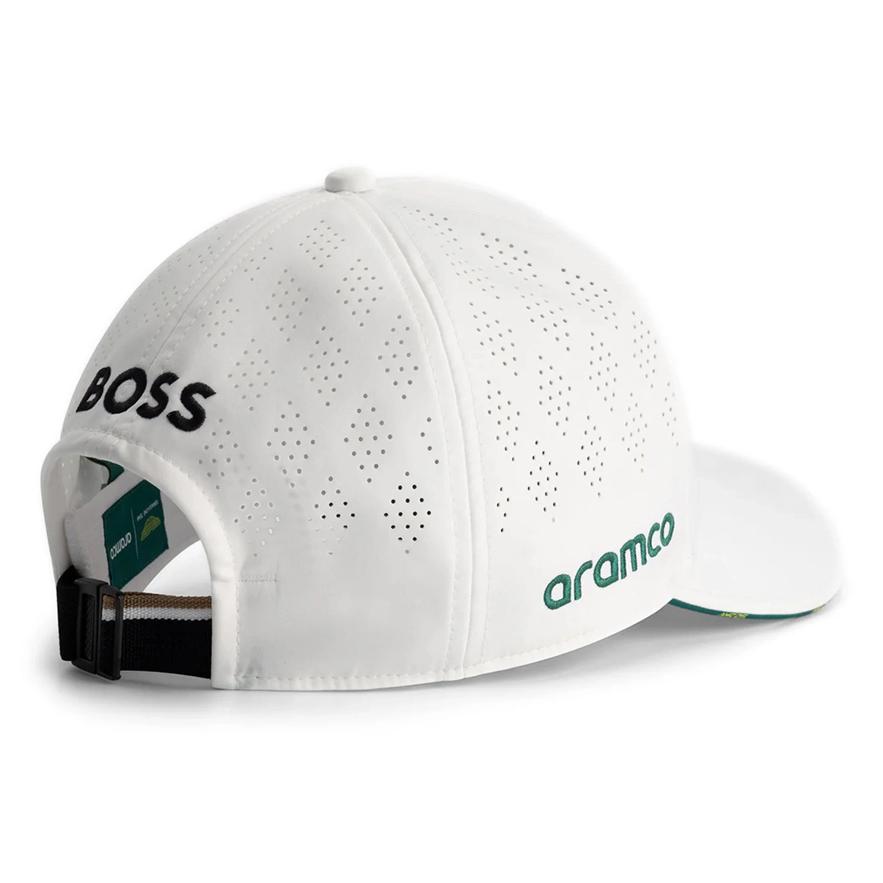 Oficjalna czapka z daszkiem Aston Martin F1 Team na sezon 2025 to połączenie motorsportowej tradycji i nowoczesnego designu, inspirowane bogatą historią marki w wyścigach. Wykonana z wysokiej jakości materiałów, zapewnia komfort noszenia i idealne dopasowanie dzięki regulowanemu zapięciu. Zakrzywiony daszek chroni przed słońcem, a oficjalne logo zespołu i subtelne detale BOSS podkreślają jej wyścigowy charakter. Idealna zarówno na tor, jak i na co dzień.
