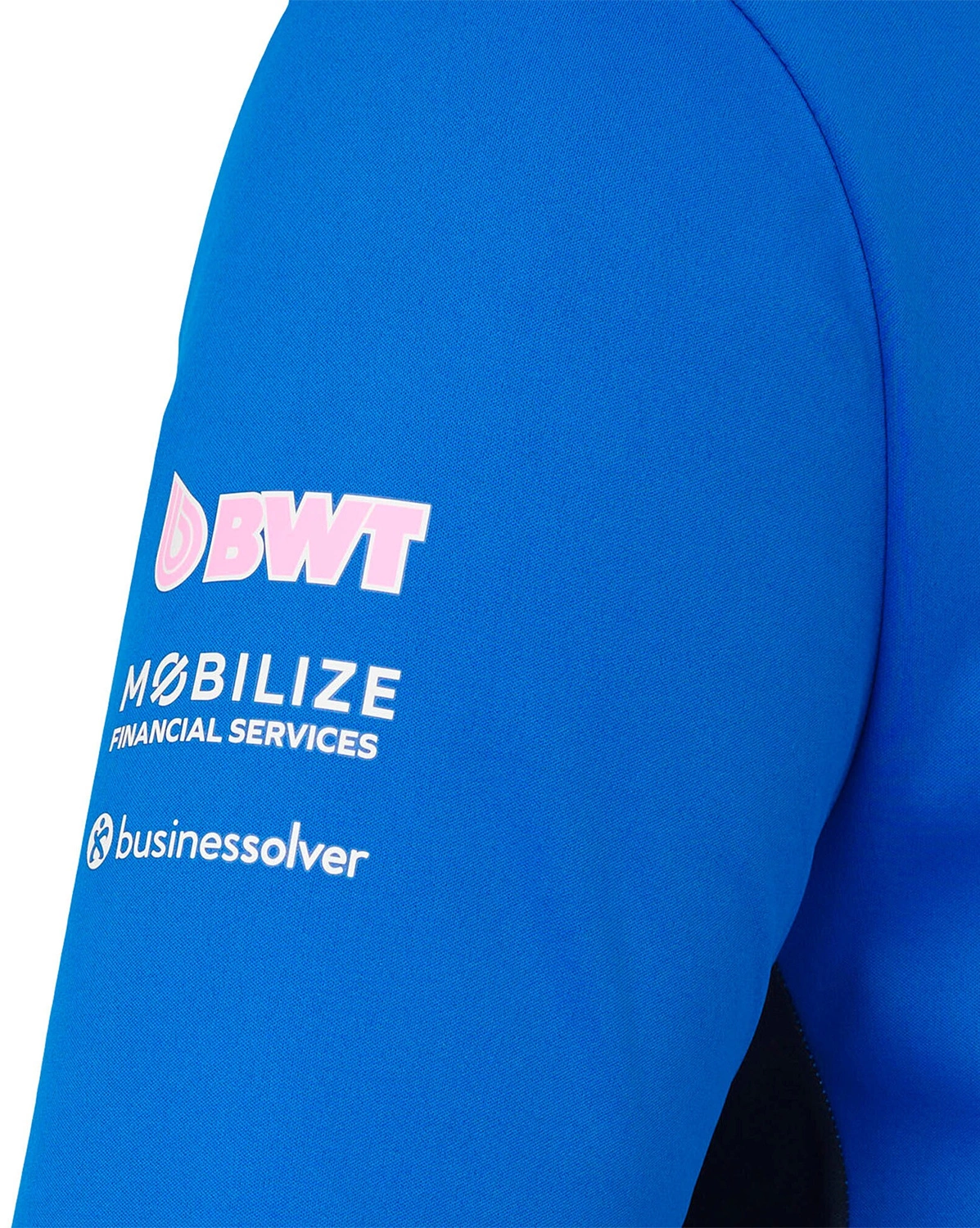 Oficjalna kurtka softshell BWT Alpine F1 Team to doskonały wybór dla każdego fana zespołu. Lekka, oddychająca i wygodna – sprawdzi się zarówno na torze, jak i na co dzień. Dzięki ergonomicznym bocznym panelom i nadrukowanym logotypom sponsorów wyróżnia się sportowym charakterem i nowoczesnym wyglądem.