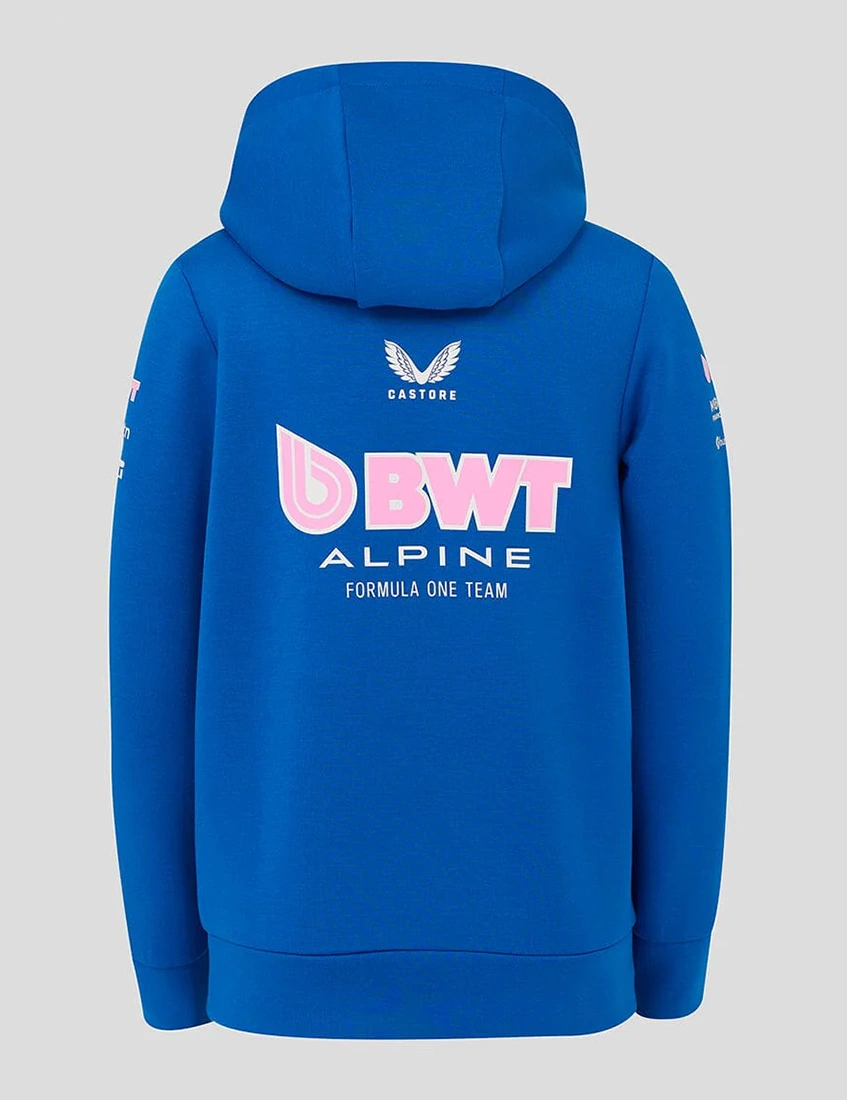 Oficjalna dziecięca bluza z kapturem BWT Alpine F1 Team na sezon 2025 łączy wygodę z funkcjonalnością, idealnie sprawdzając się na co dzień. Zapięcie na zamek błyskawiczny zapewnia komfort noszenia, a przestronne kieszenie umożliwiają bezpieczne przechowywanie drobiazgów. Dzięki elastycznym ściągaczom bluza dobrze dopasowuje się do sylwetki.