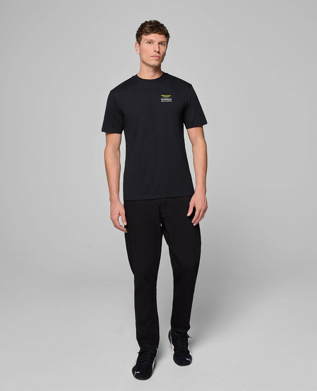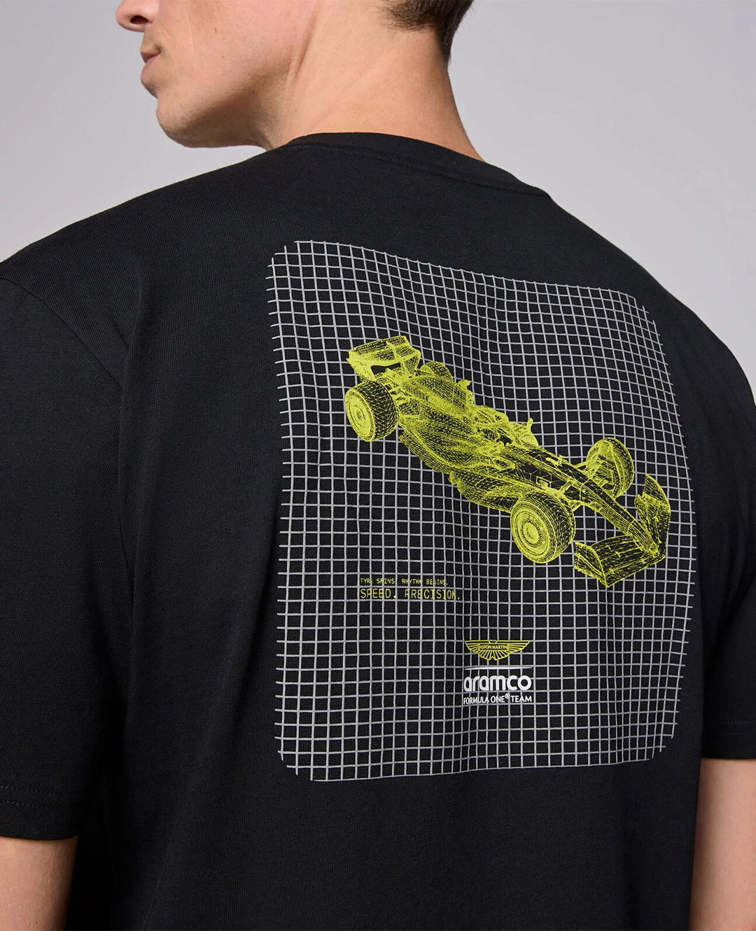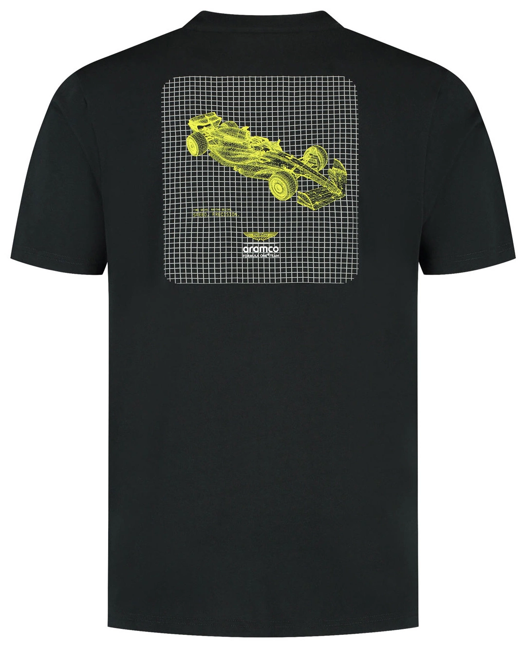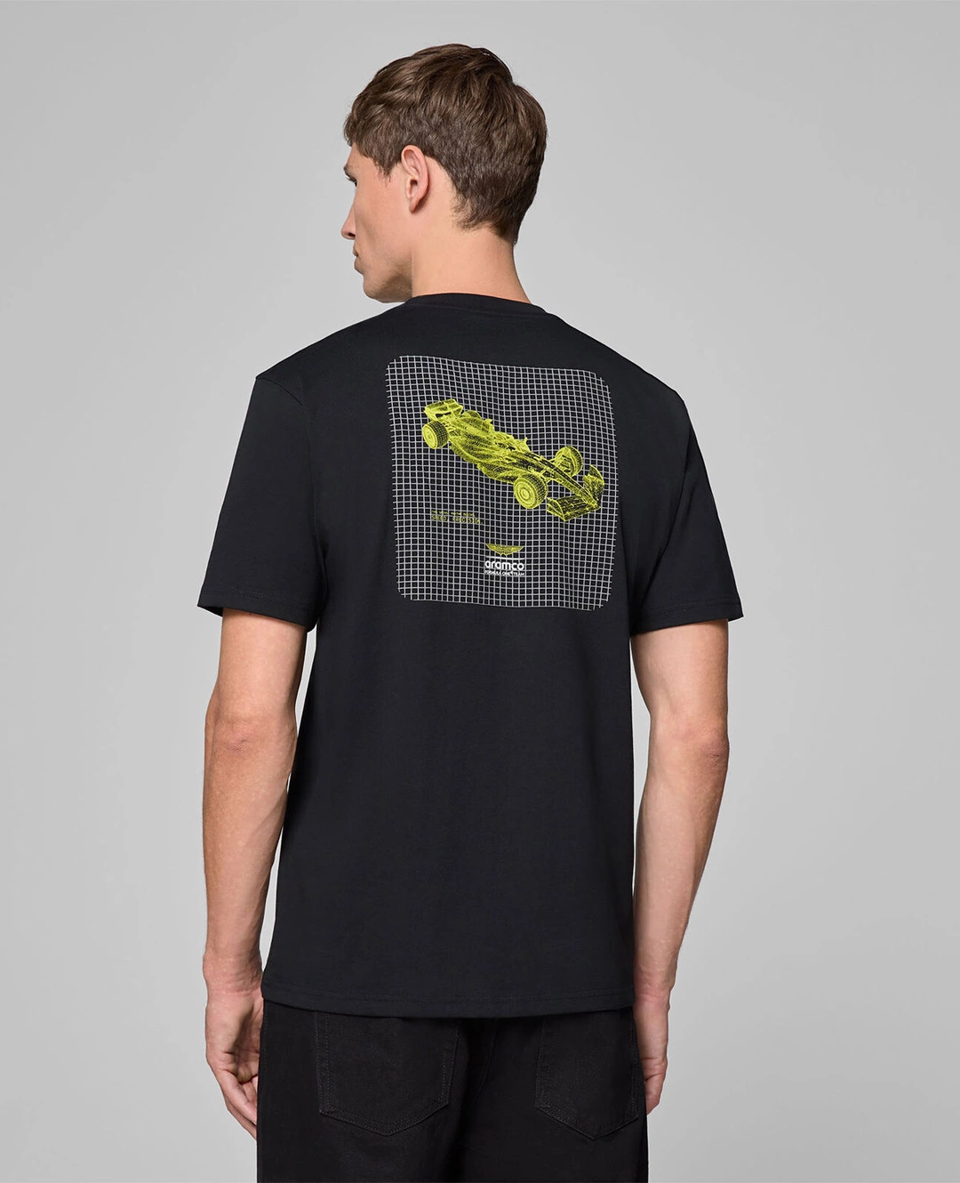 Oficjalny t-shirt Aston Martin Aramco Formula One Team Wireframe Graphic to doskonały wybór dla fanów zespołu. Charakteryzuje się futurystycznym nadrukiem inspirowanym technicznymi szkicami bolidu F1, a jego wysokiej jakości materiał gwarantuje wygodę przez cały dzień.