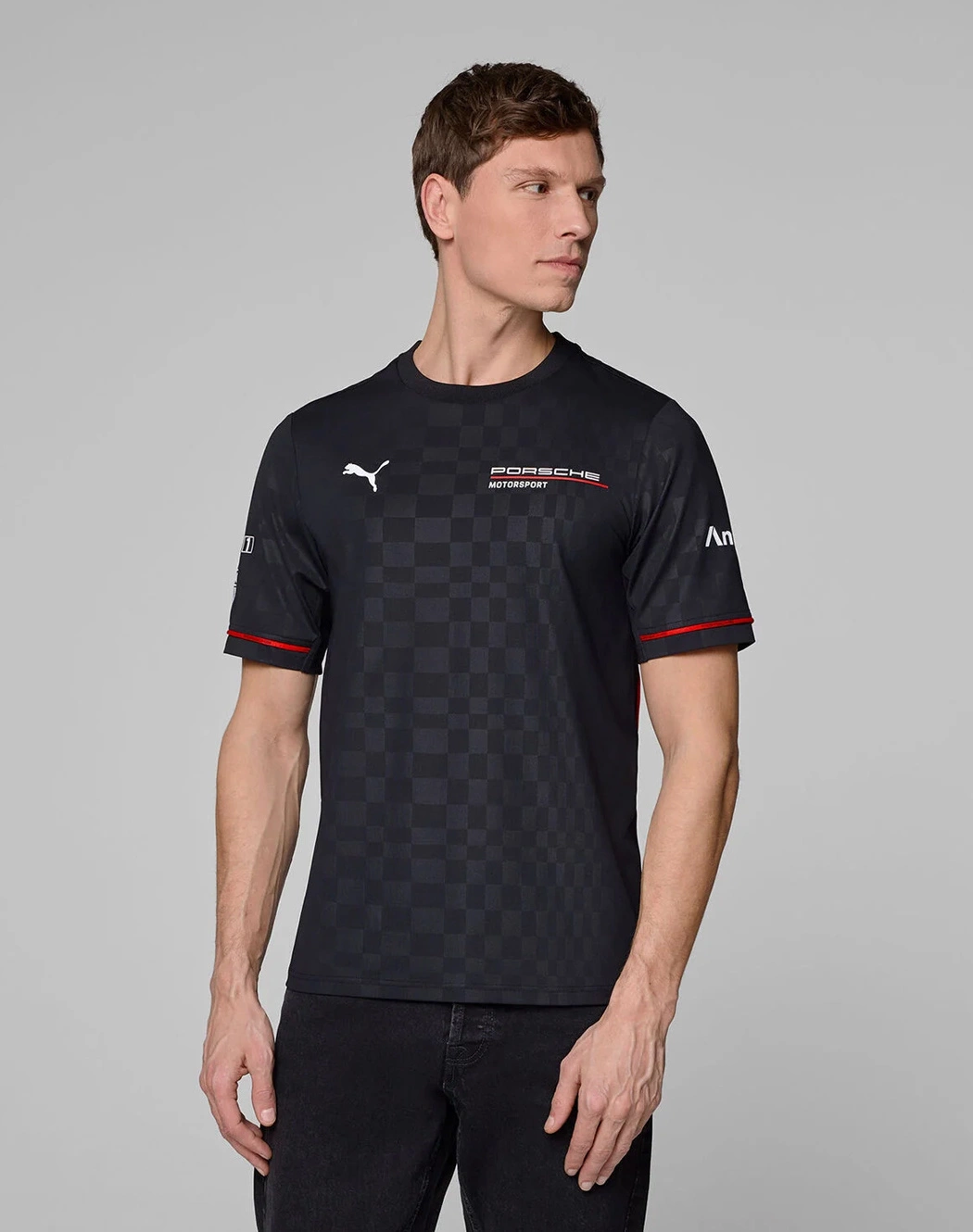Męski t-shirt Porsche Motorsport łączy w sobie pasję do wyścigów z codzienną wygodą. Wykonany z wysokogatunkowego materiału, z charakterystycznym logo Porsche, zapewnia komfort noszenia i swobodę ruchów, idealnie wpisując się w sportowy charakter marki.