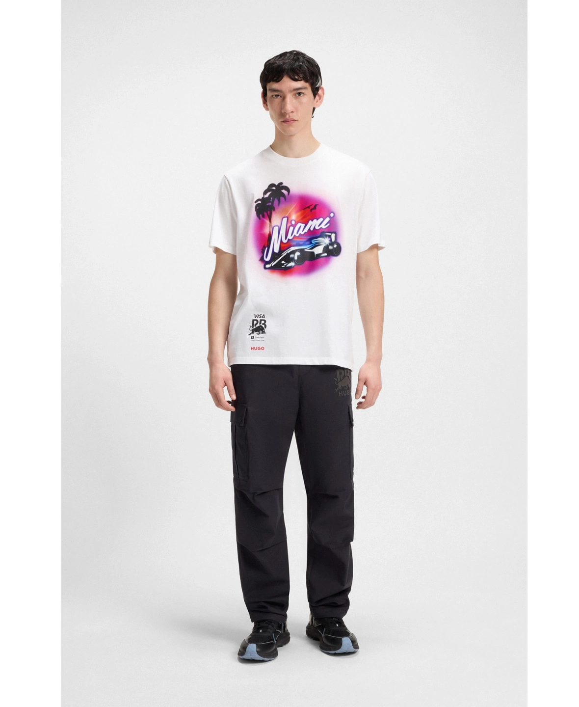 Oficjalny t-shirt Visa Cash App Racing Bulls Formula One Team zaprojektowany specjalnie na Grand Prix Miami 2025. Koszulka wyróżnia się grafiką inspirowaną kolorami i energią Miami, oddając wyjątkowy klimat wyścigu.
