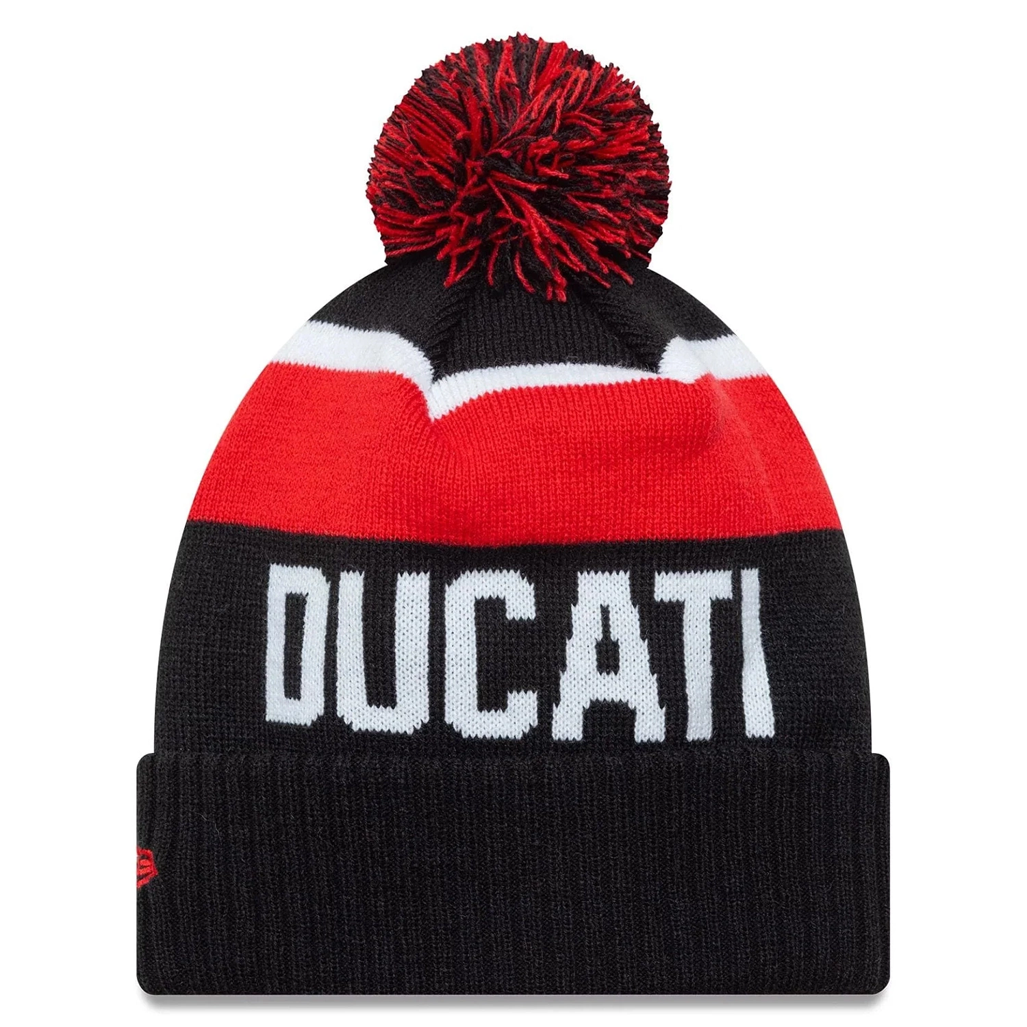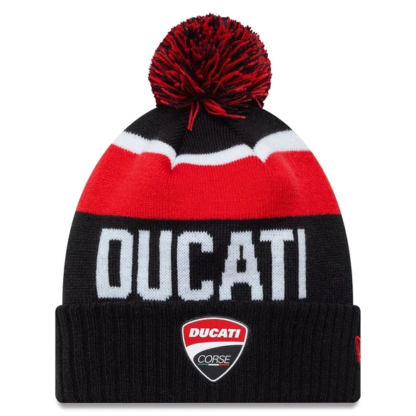 Oficjalna zimowa czapka typu beanie Ducati Corse, zaprojektowana przez New Era w klasycznym czarnym kolorze w paski. Wykonana z miękkiej, elastycznej dzianiny, która zapewnia komfort noszenia i ochronę przed chłodem. Charakterystyczne logo Ducati i sportowy styl sprawiają, że to świetna propozycja dla fanów włoskiej marki motocyklowej.