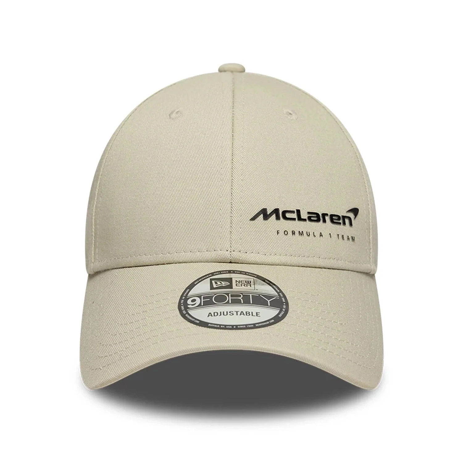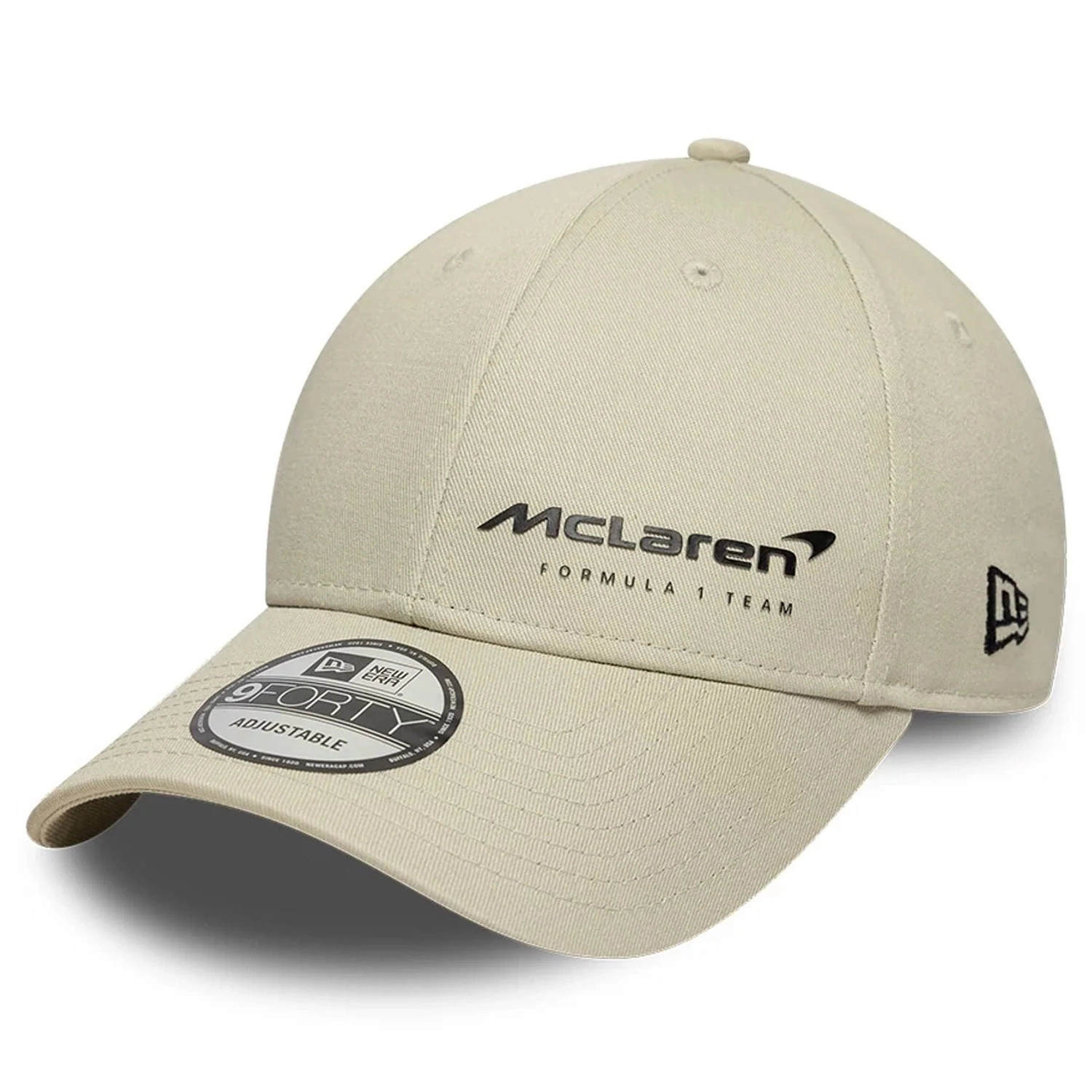 Oficjalna czapka z daszkiem McLaren F1 Team od New Era w beżowym kolorze. Klasyczna czapka z usztywnionym frontem, zakrzywionym daszkiem i regulowanym zapięciem gwarantuje komfort i idealne dopasowanie. Doskonała propozycja dla fanów Formuły 1 oraz zespołu McLarena.