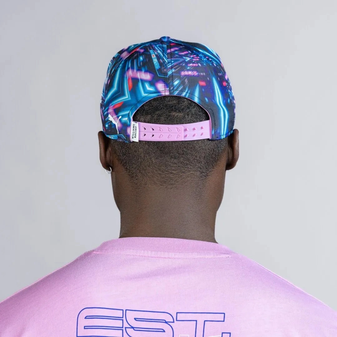 Specjalna edycja czapki Williams Racing F1 2025 Night Race oddaje klimat nocnych wyścigów Formuły 1, łącząc sportową energię z nowoczesnym designem. Wykonana w 100% z poliestru, zachwyca lekką konstrukcją i efektownym wzornictwem inspirowanym barwami zespołu Williams Racing.