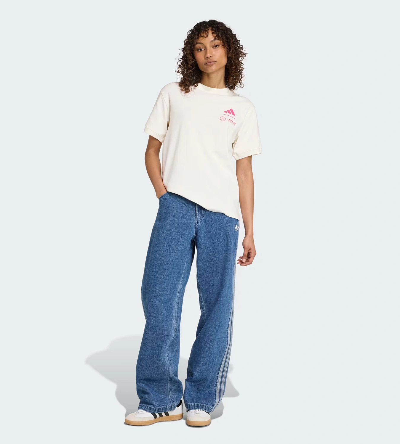 Koszulka damska Mercedes AMG Petronas F1 z kolekcji adidas Motorsport została zaprojektowana z myślą o codziennym komforcie noszenia. Sprawdzi się zarówno podczas pobytu na torze wyścigowym, jak i w trakcie oglądania wyścigu w domu. Bawełniana tkanina z dodatkiem elastanu zapewnia wygodę i swobodę ruchów, a oficjalny branding Mercedes-AMG Petronas Formula One Team dopełnia autentycznego, wyścigowego charakteru.